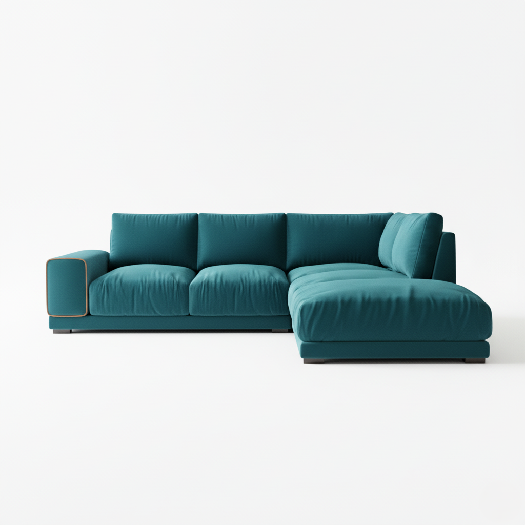 विशेषताएं - 3 सीटर एल आकार सोफा मजबूत सागौन लकड़ी के फ्रेम और टिकाऊ कपड़े के साथ एक चिकना, आधुनिक रूप और लंबे समय तक चलने वाले आराम के लिए।