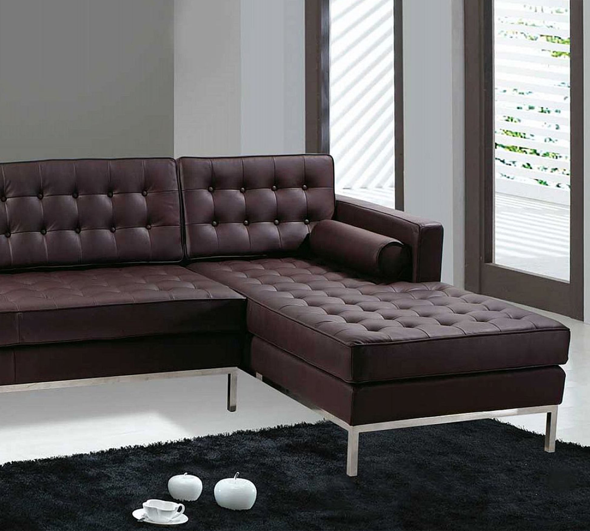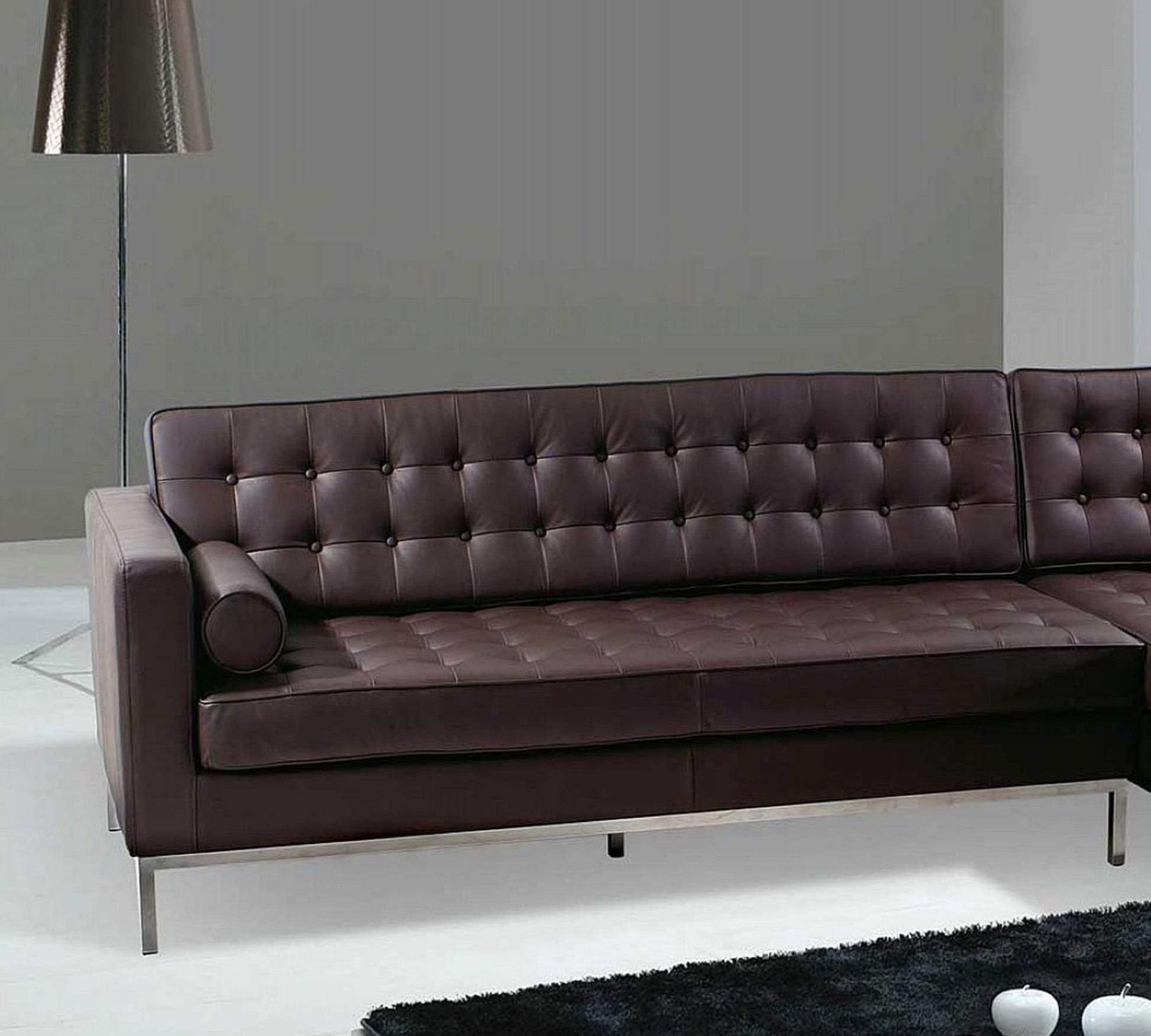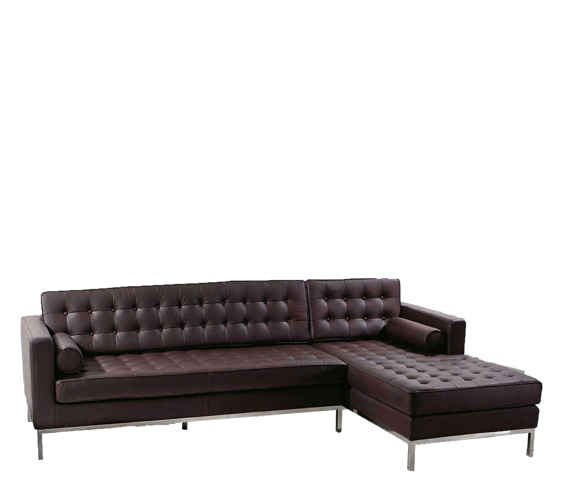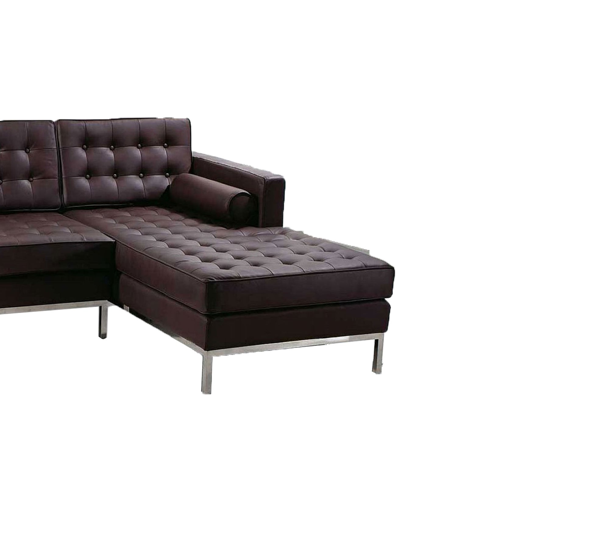 लकड़ी के ढांचे के साथ लेदरेट एल आकार का सोफा, सर्वोत्तम गुणवत्ता और गुच्छेदार डिज़ाइन, घर और कार्यालय के सोफे के लिए क्रोम फिनिश के साथ धातु के पैर