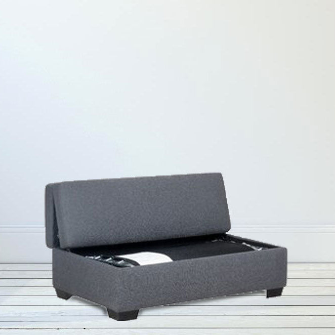 स्टोरेज के साथ लकड़ी के फ्रेम वाला फ़ैब्रिक ओटोमन