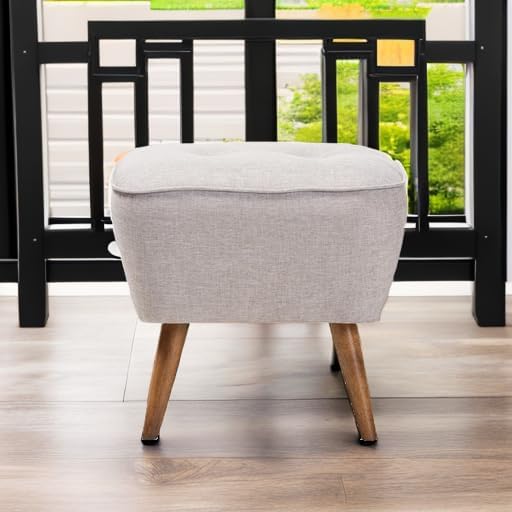 कपड़े के असबाब के साथ लकड़ी का पाउफ