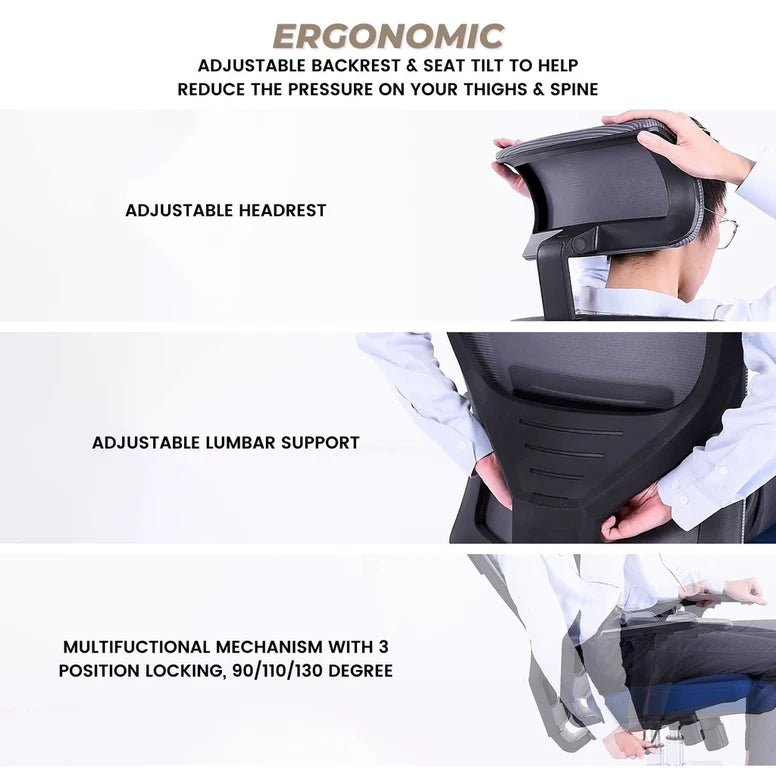 - रीढ़ को सहारा देने के लिए प्राकृतिक वक्र के साथ एर्गोनोमिक बैकरेस्ट