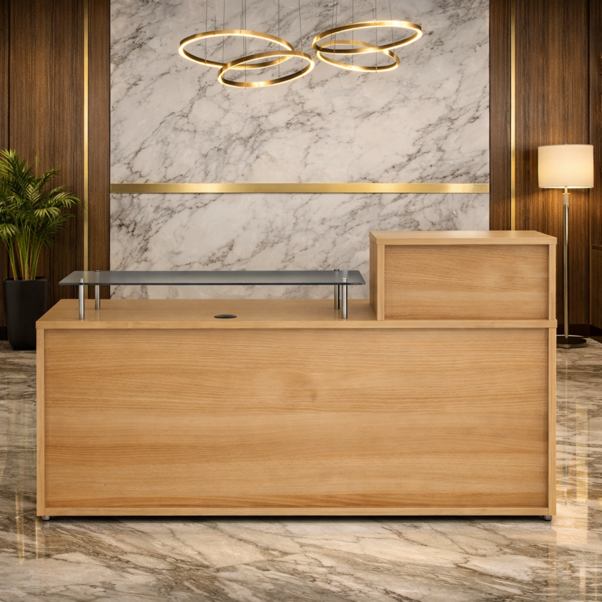 कार्यालय के लिए रिसेप्शन टेबल, कार्यालय और रिसेप्शन क्षेत्र के लिए छोटा काउंटर, सरल, मध्यम, सीधा डेस्क