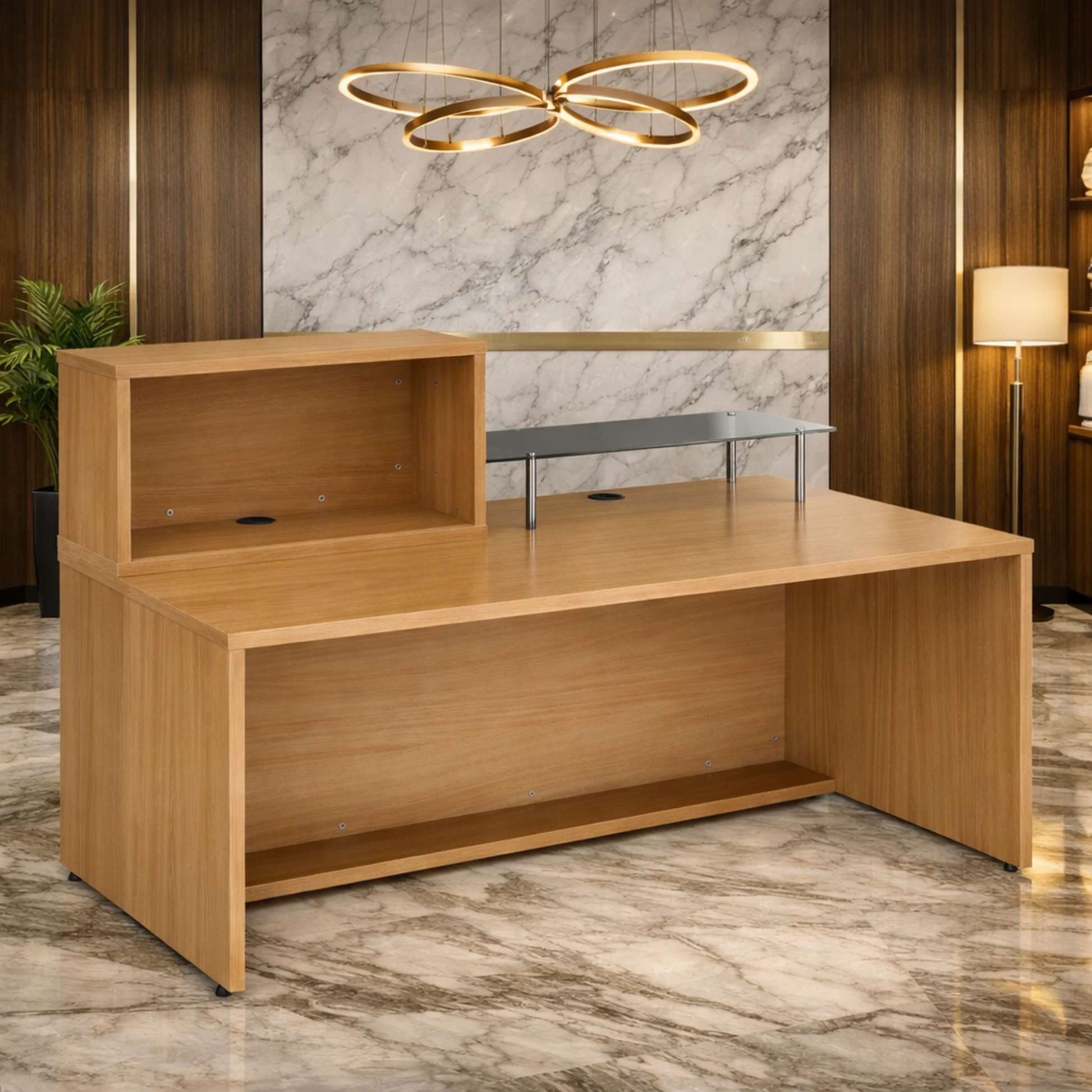 विशेषता:- दो वायर मैनेजर के साथ कार्यालय रिसेप्शन डेस्क