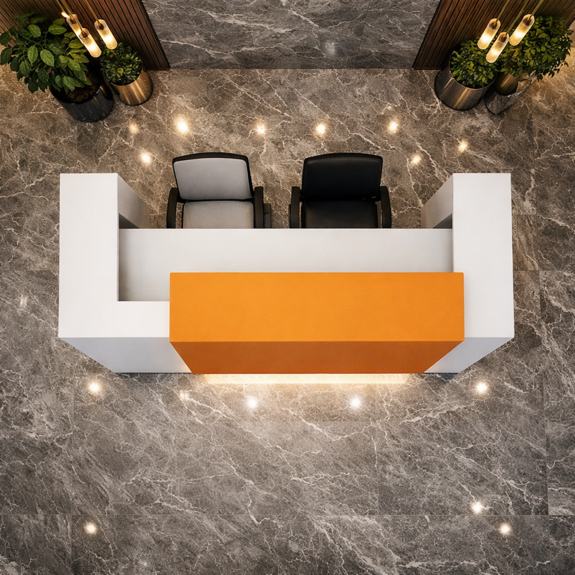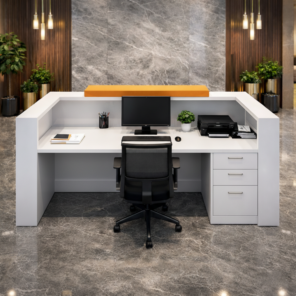 विशेषता:- दो वायर मैनेजर के साथ कार्यालय रिसेप्शन डेस्क