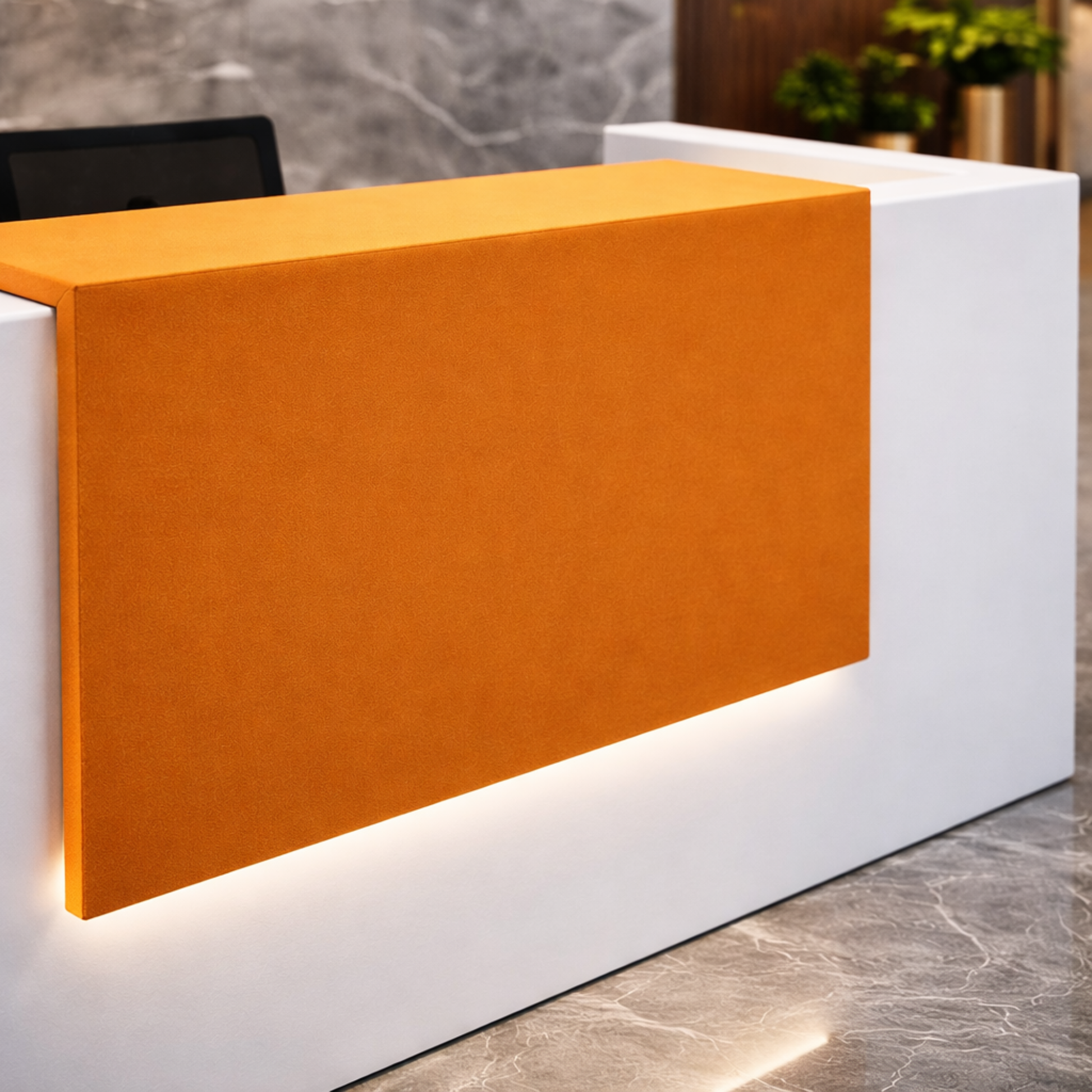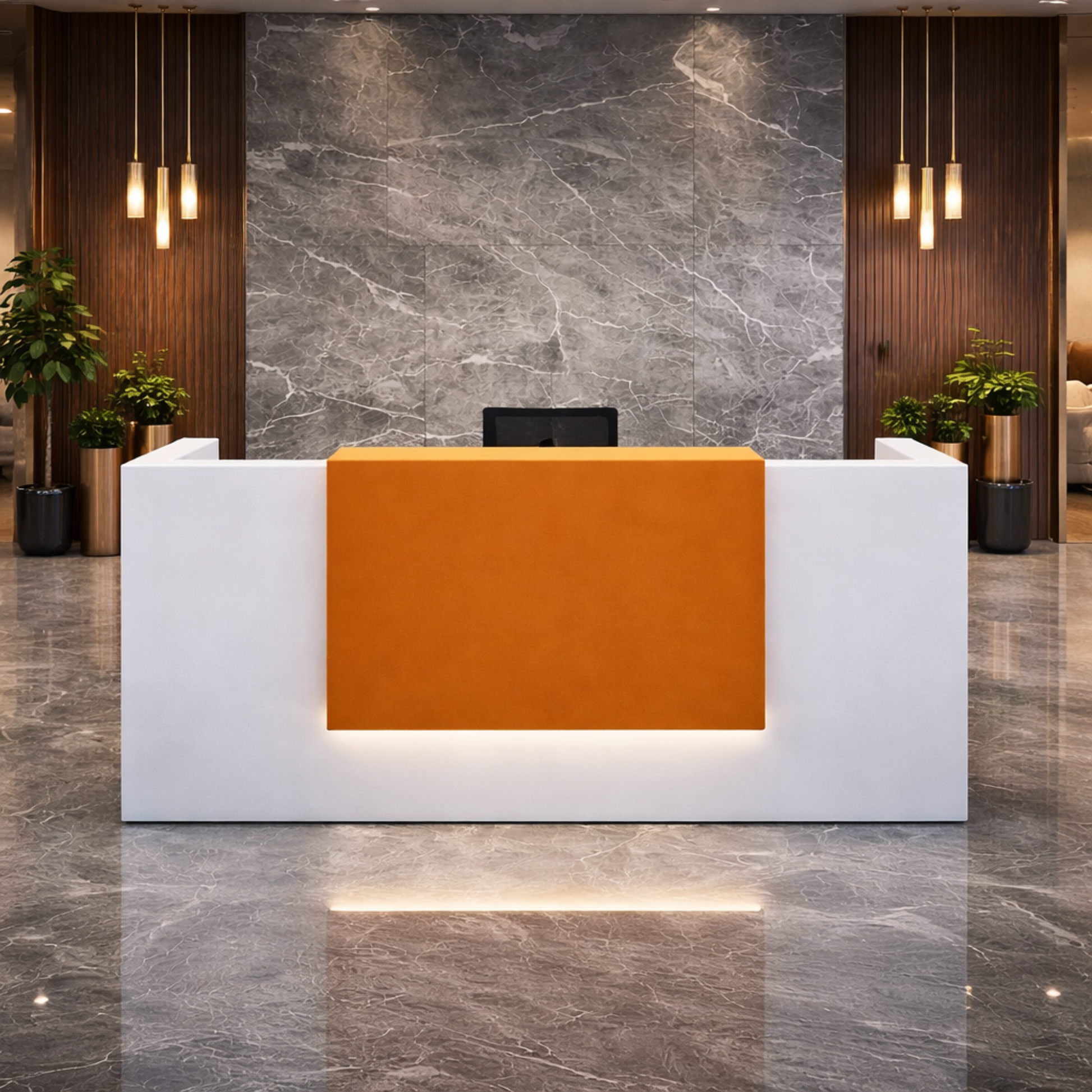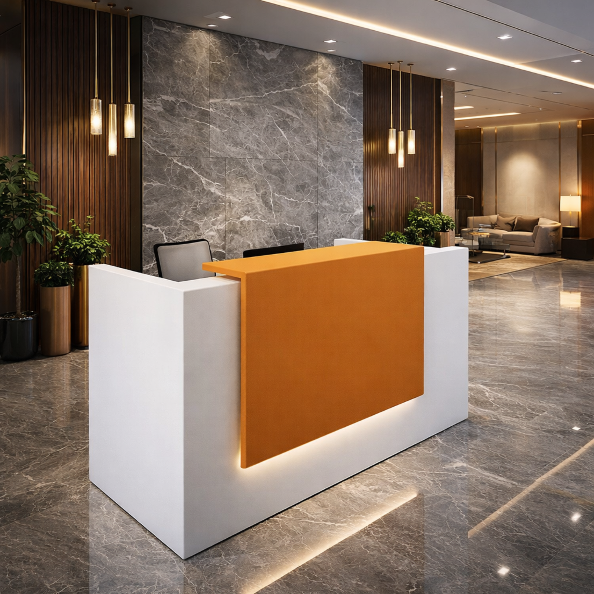 साइड पैनल और मोडेस्टी के साथ विस्तारित डीलिंग टॉप के साथ रिसेप्शन टेबल