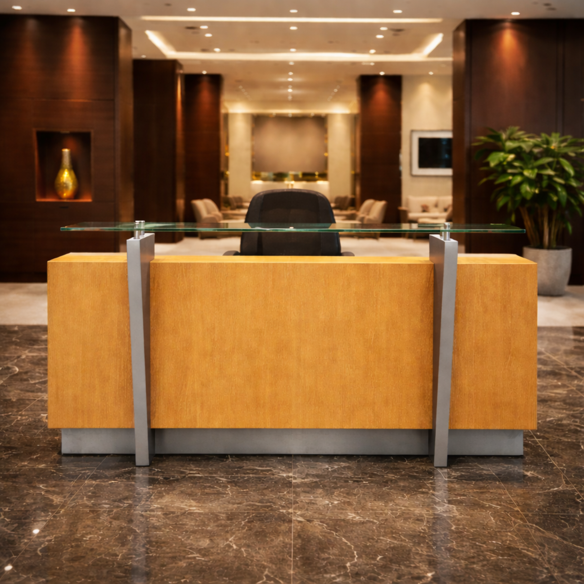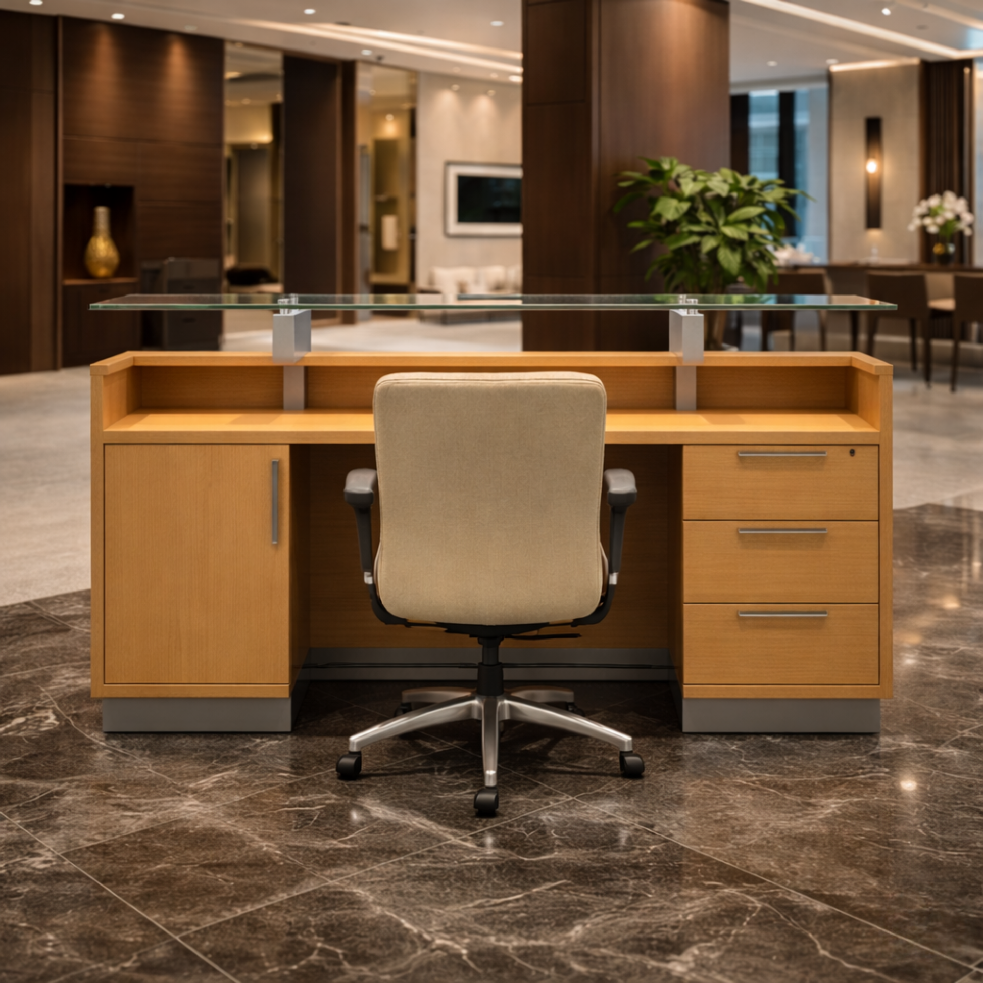 साइड पैनल और मोडेस्टी के साथ विस्तारित डीलिंग टॉप के साथ रिसेप्शन टेबल