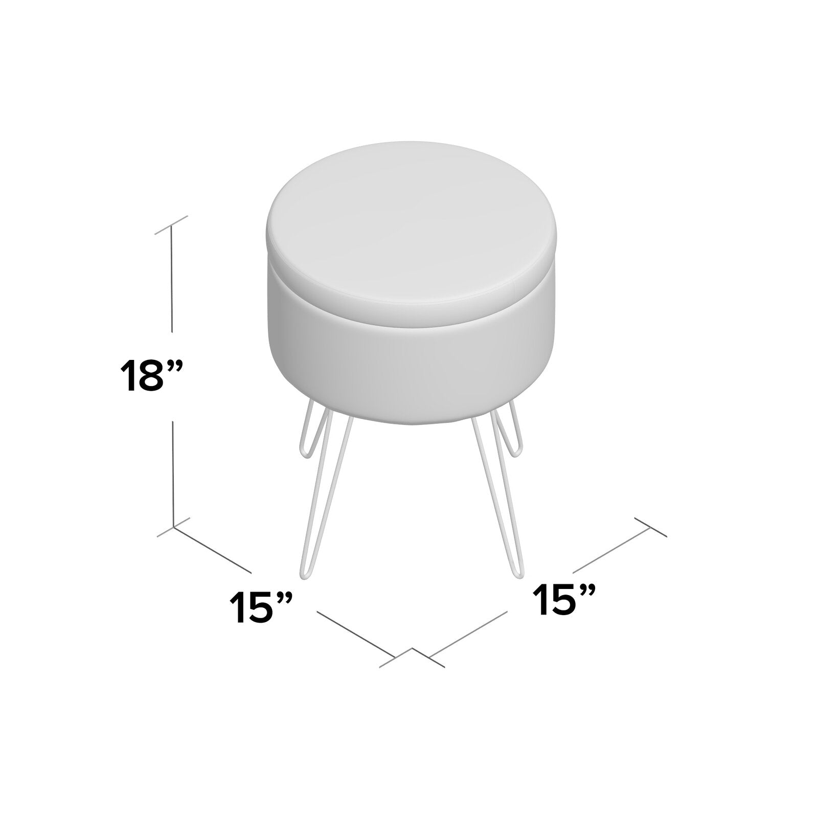 उत्पाद के आयाम: लंबाई - 15 इंच, चौड़ाई - 15 इंच, ऊंचाई - 18 इंच, सीट की ऊंचाई - 18 इंच (लगभग)