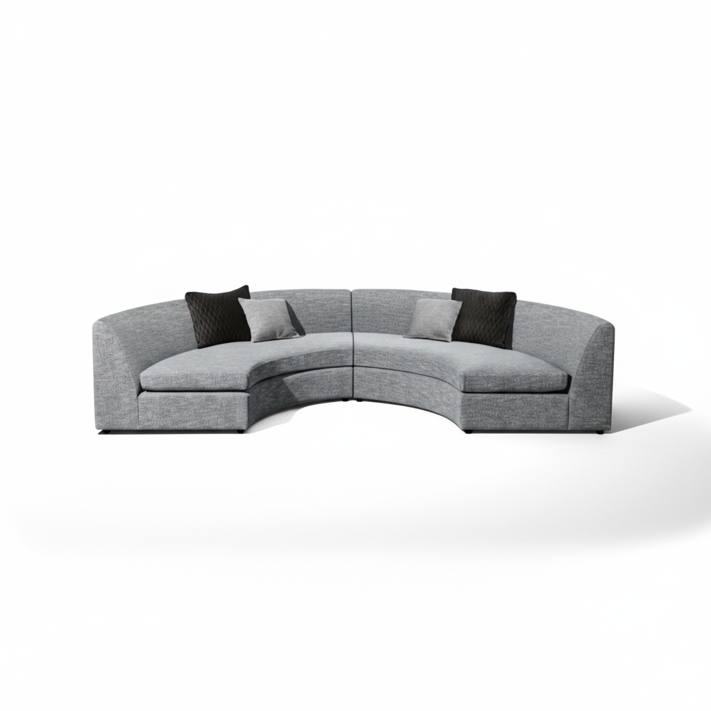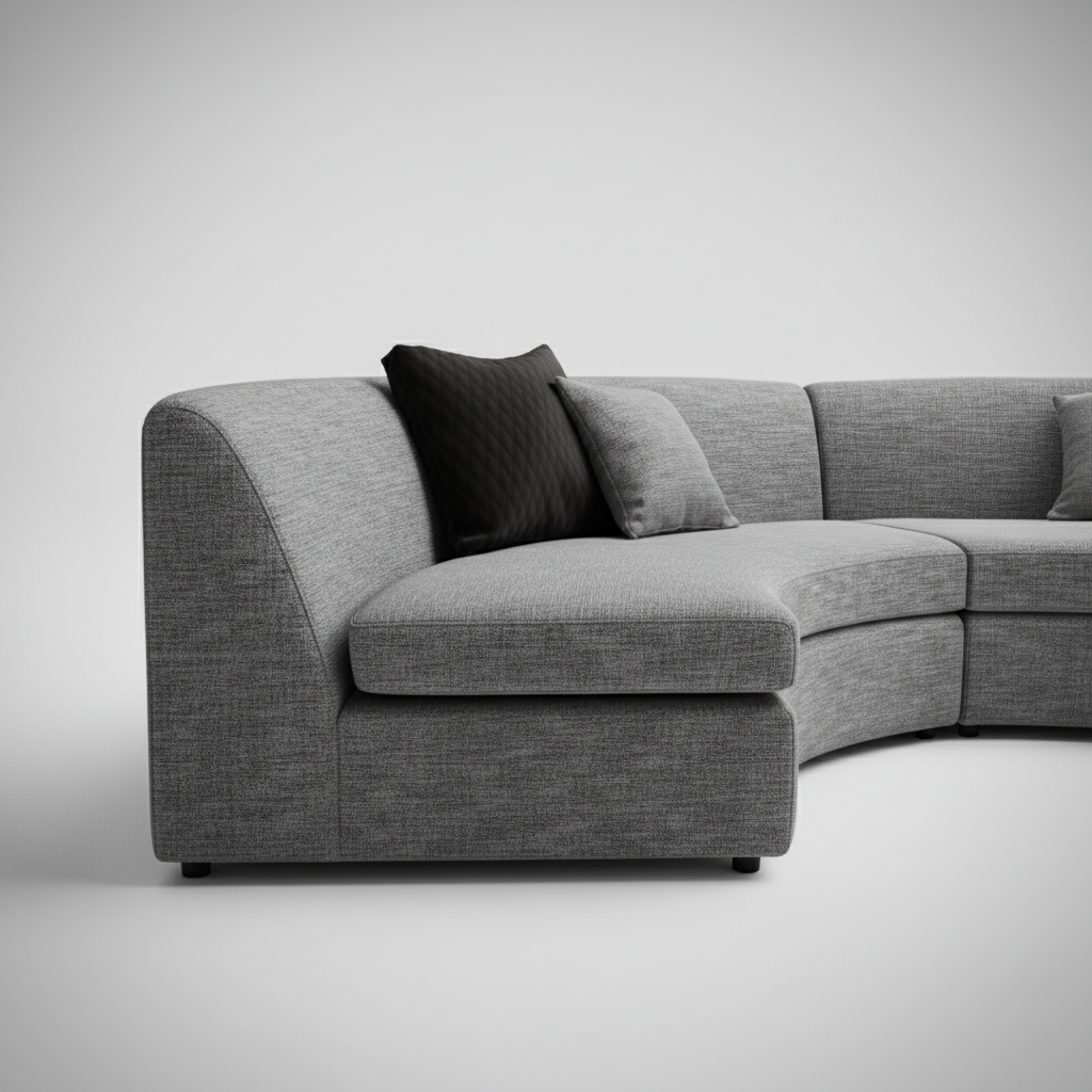 छोटे गोलाकार सोफा और घर और फर्नीचर और असबाब कपड़े के लिए, लिविंग रूम के लिए आधुनिक और टिकाऊ डिजाइन - हल्का ग्रे