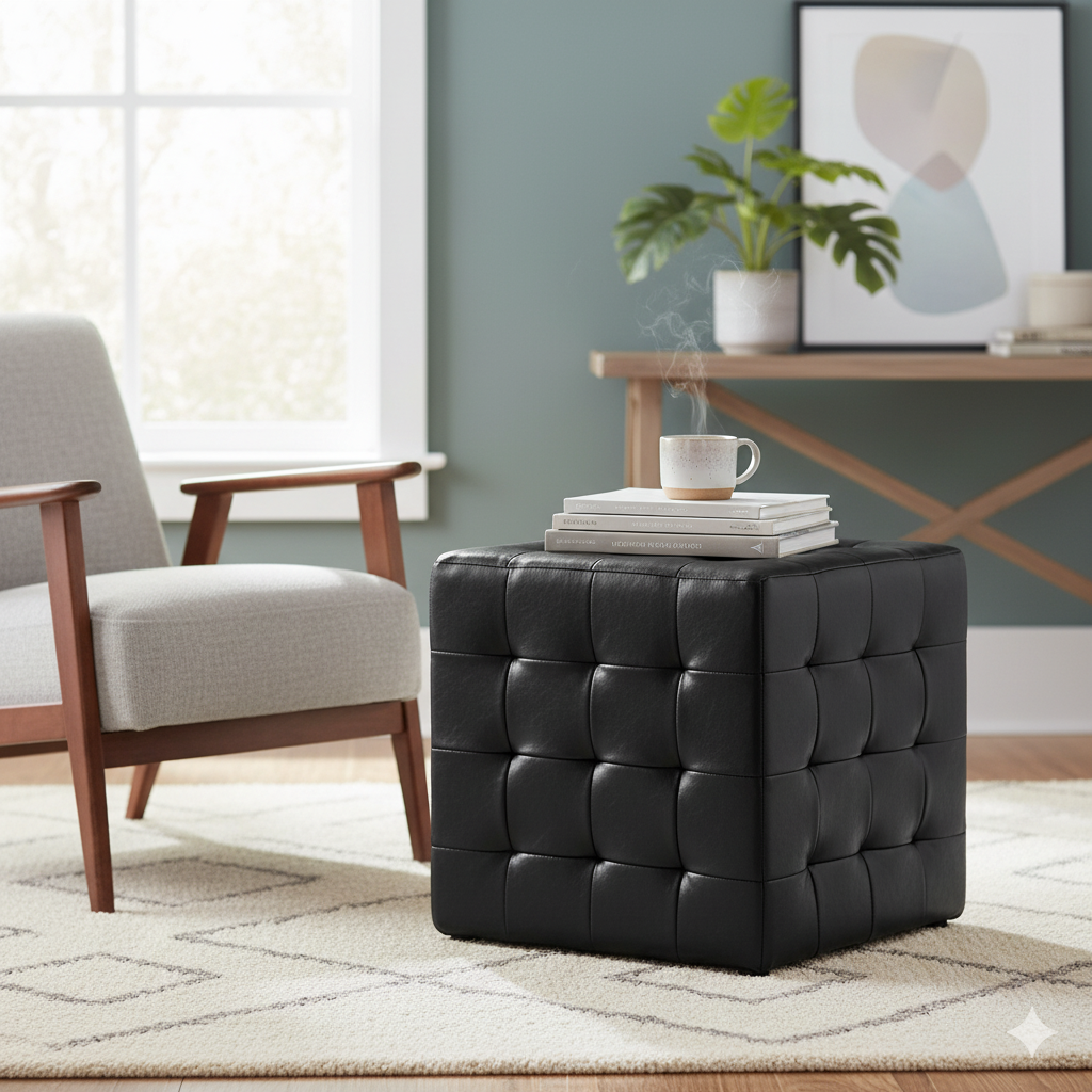 ठोस लकड़ी के फ्रेम वाला लेदरेट ओटोमन