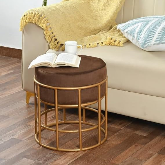 फ़ैब्रिक अपहोल्स्ट्री और मेटल बेस पाउफ़