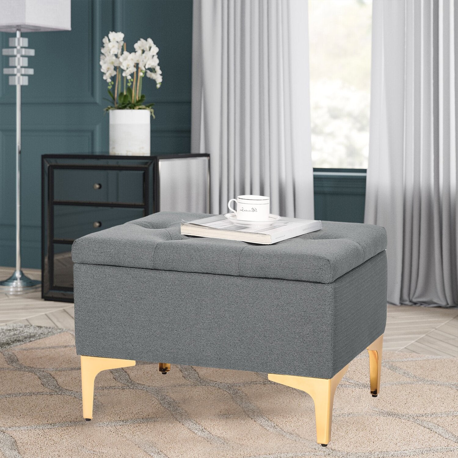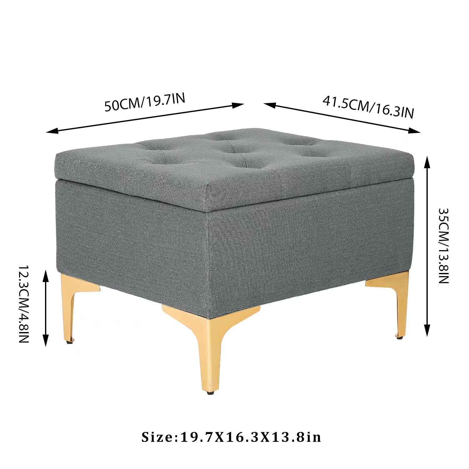 फ़ैब्रिक अपहोल्स्ट्री और मेटल लेग्स बेस ओटोमन स्टोरेज के साथ