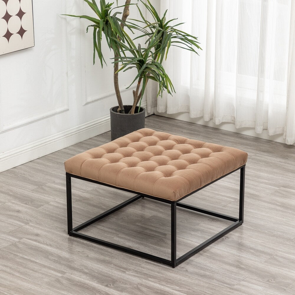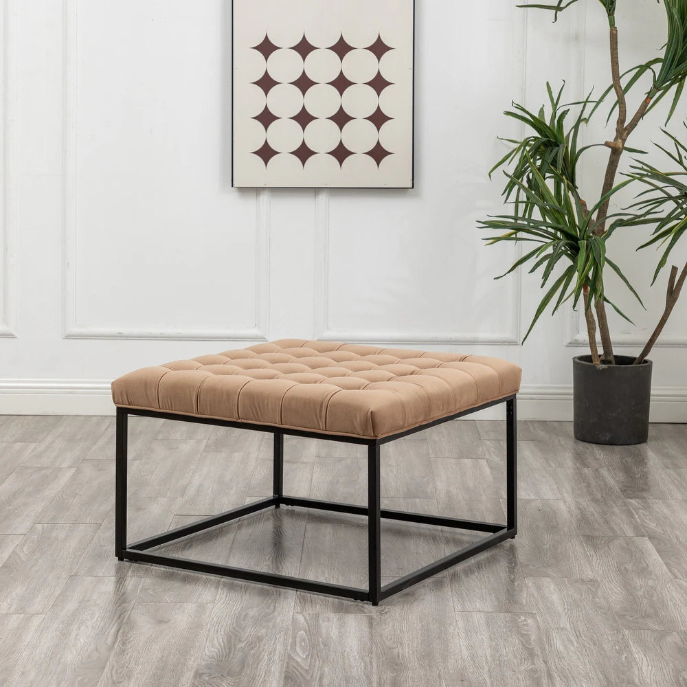 लेदरेट असबाब और धातु आधार के साथ ओटोमन