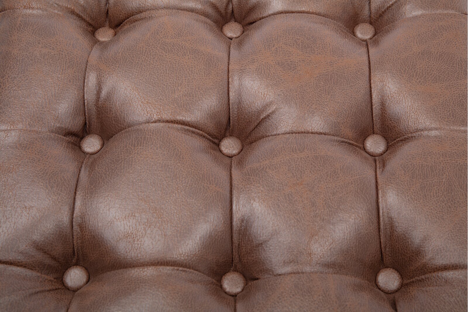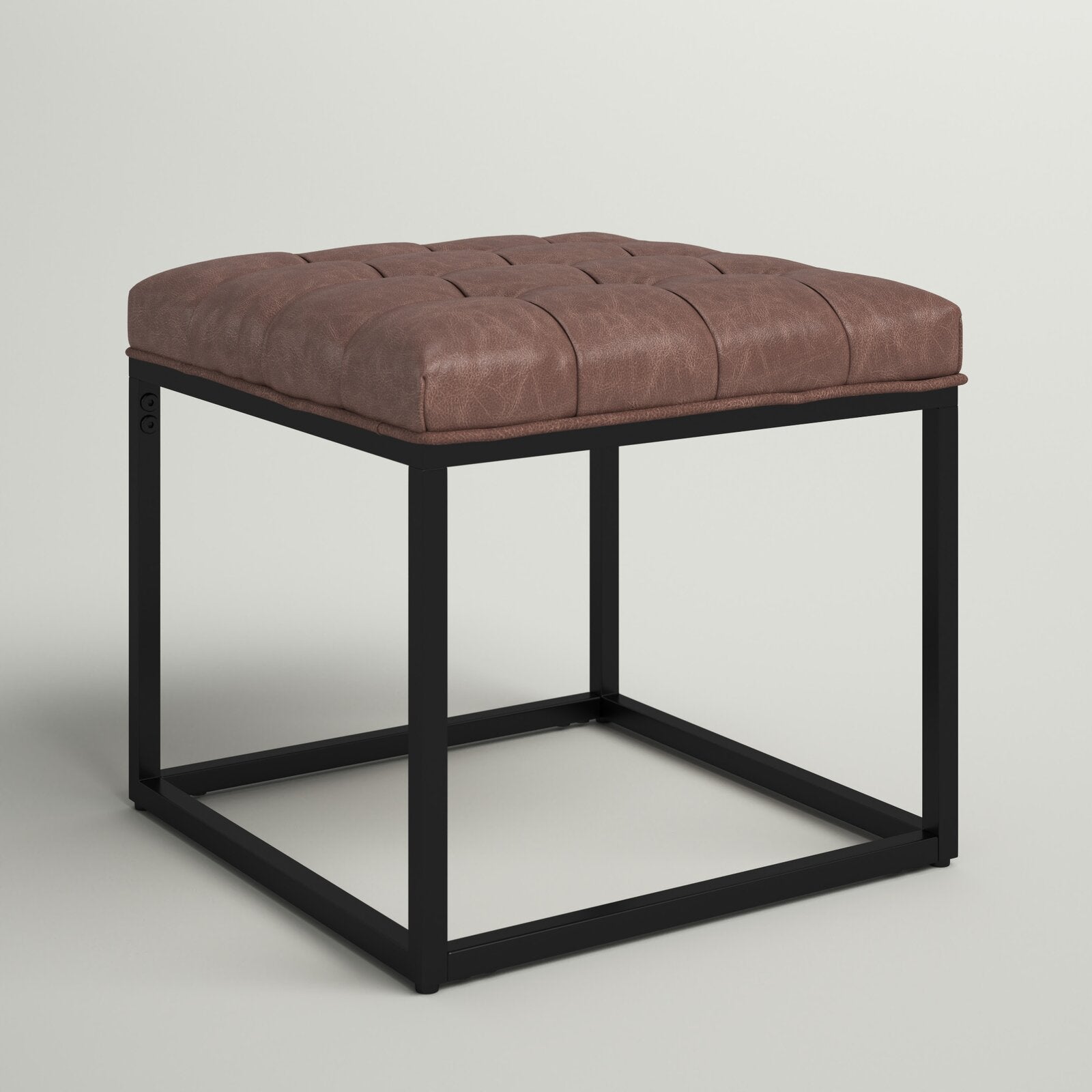 लेदरेट अपहोल्स्ट्री और मेटल बेस पाउफ