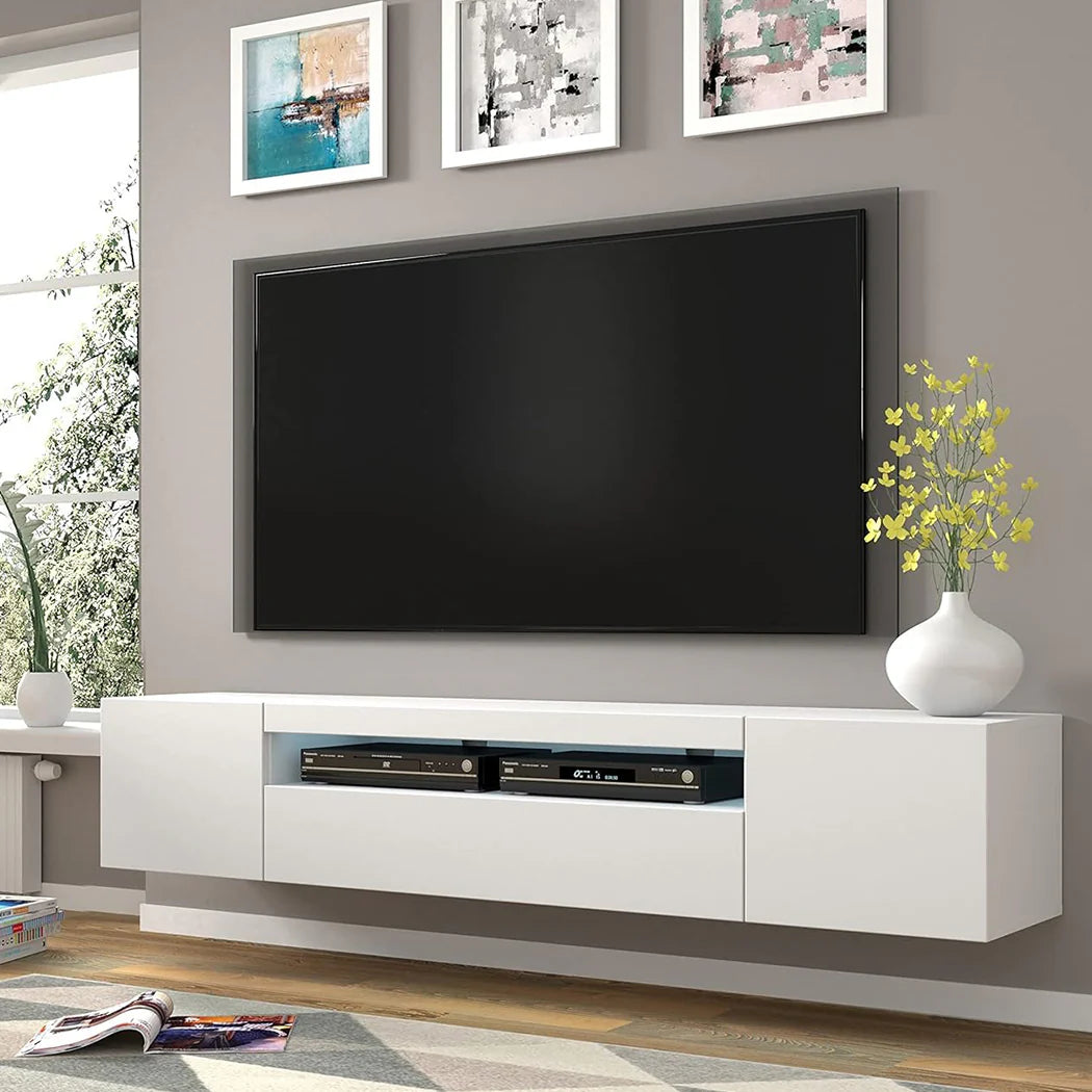 विशेषता :- एक चिकना दीवार पर लगे डिजाइन की विशेषता के साथ, यह फर्श की जगह बचाता है और साथ ही आपके मनोरंजन क्षेत्र को अव्यवस्था मुक्त, न्यूनतम और बहु दराज और अलमारियों के साथ आधुनिक अपील के साथ बढ़ाता है।
