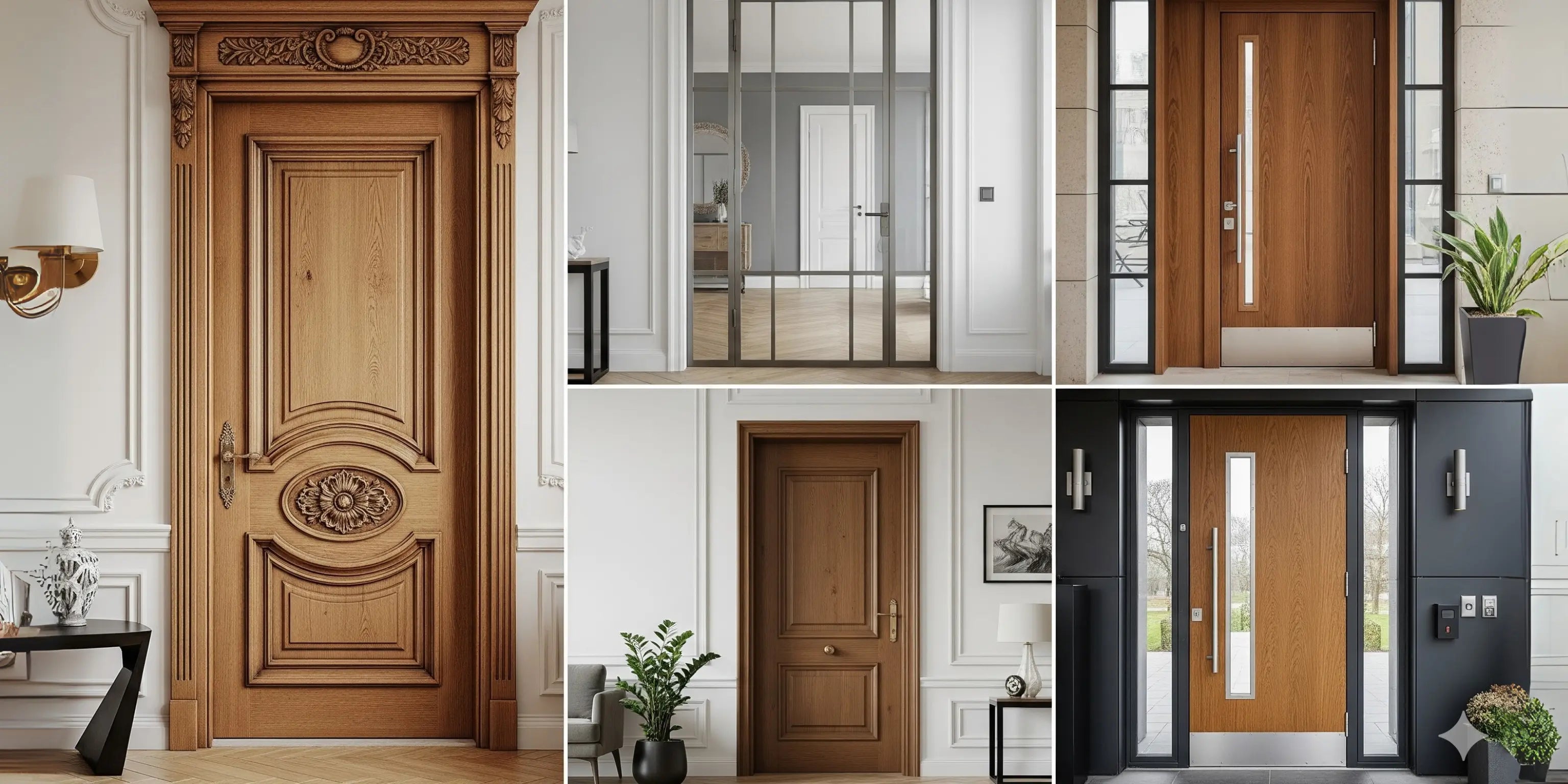 - Timeless, elegant, and strong, our wooden doors come in a variety of styles, including solid wood doors, panel doors, flush doors, and carved wooden doors.