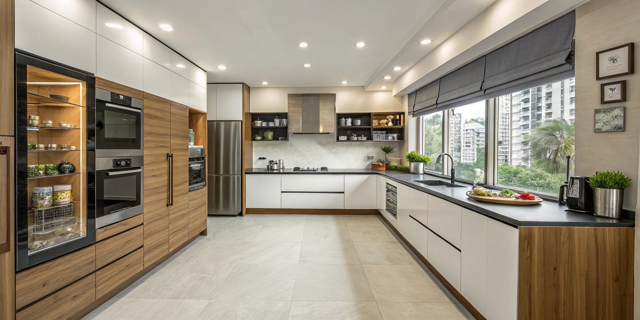 L-Shaped Modular Kitchens:Ideal for compact spaces, this design maximizes corner spaces and offers a seamless work triangle.