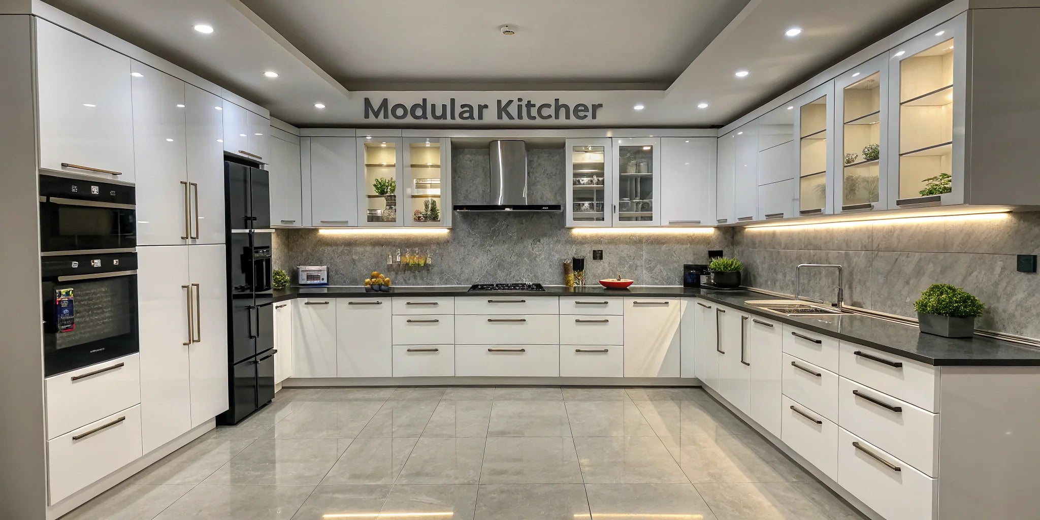 U-Shaped Modular Kitchens:Perfect for larger spaces, this layout provides ample storage and counter space.