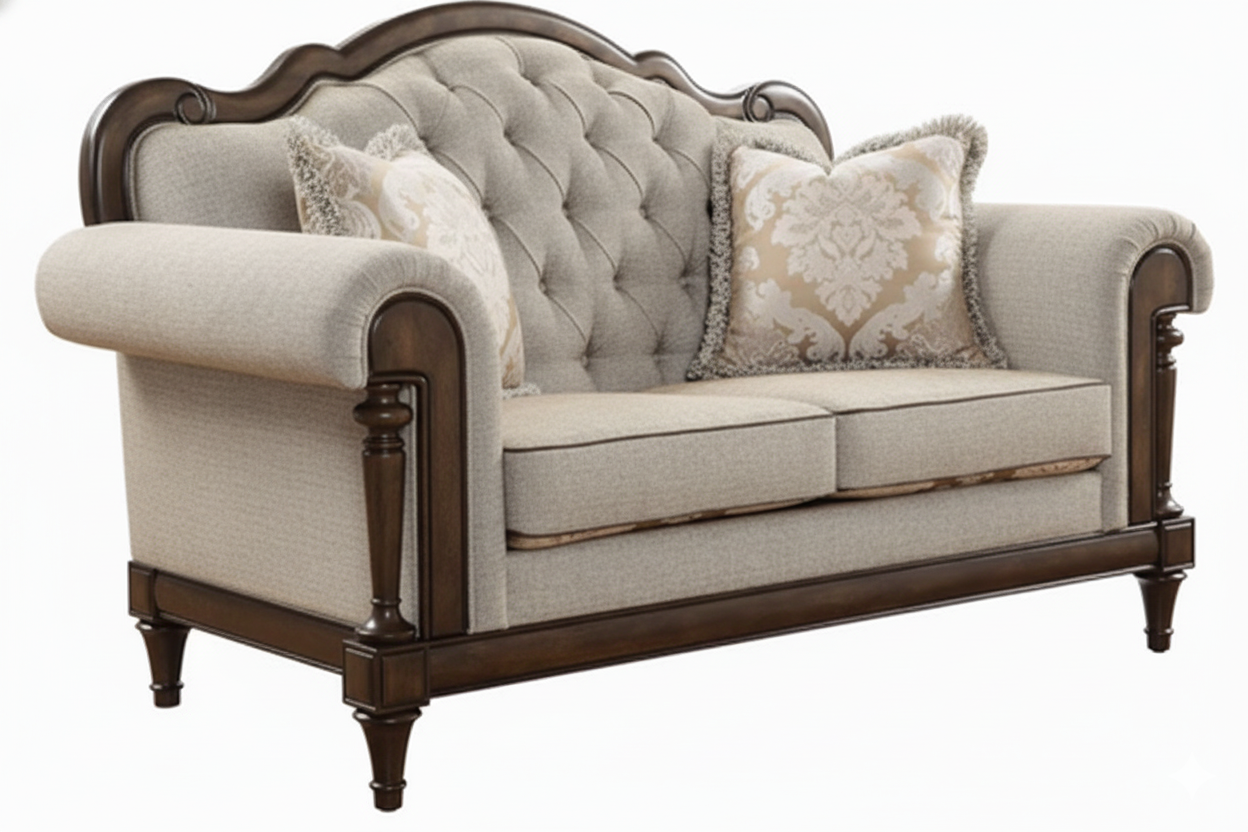 2 Seater Wooden Sofa For Home Furniture, Upholstery Fabric Premium And Durable Design For Living Room and Hall- Cream