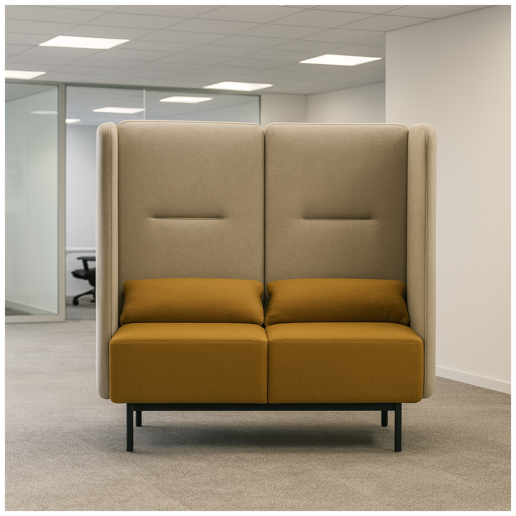 Feature:Â The high back lounge sofa for office open space that creates a new architecture for waiting areas, thanks to its design, for hotels, restaurants, executive office entrances, lounges and contract. The back, sides and seat cushions are available in two different heights, creating a private and intimate reception area for offices, entrances or lounge areas in which to read, rest or simply speak discreetly.