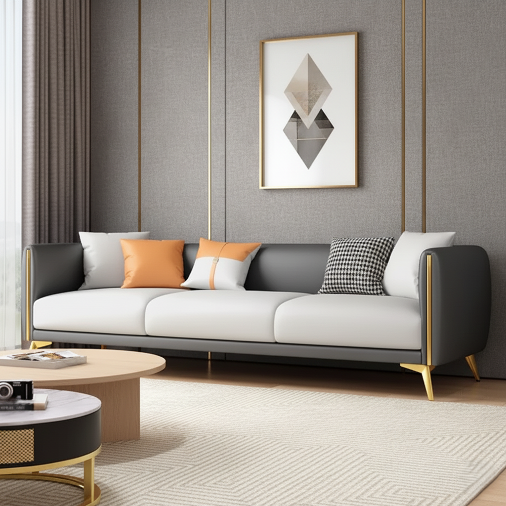 3-Seater Sofa for Living Room PU Leatherette Upholstery, and Sturdy Wood Frame for a Modern Look and Lasting Durability.