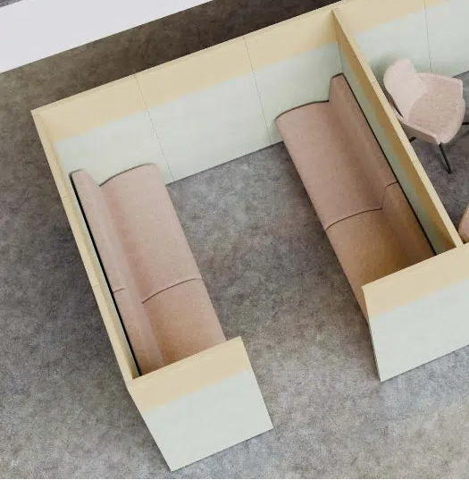 Feature: Impress visitors with this stylish and practical reception sofa. It's built-in privacy panel creates a semi-enclosed space for a quiet, focused experience. The modern design is complemented by easy-to-clean, stain-resistant upholstery, making it a perfect blend of form and function.
