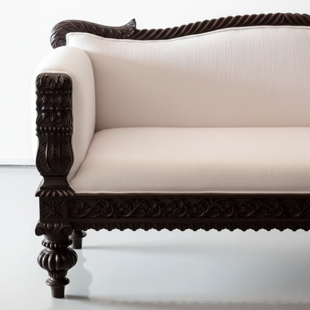 Feature: Crafted from Sheesham wood with a rich teak finish, this carved sofa set offers modern comfort with antique charm for elegant living spaces
