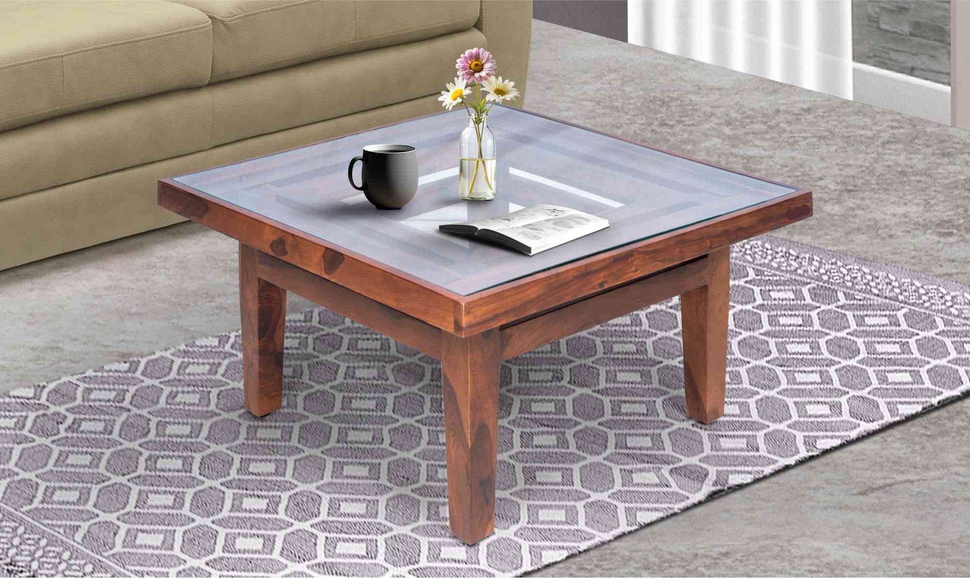 Material: Table made from Premium Solid Teak Wood with PU Polish and Glass