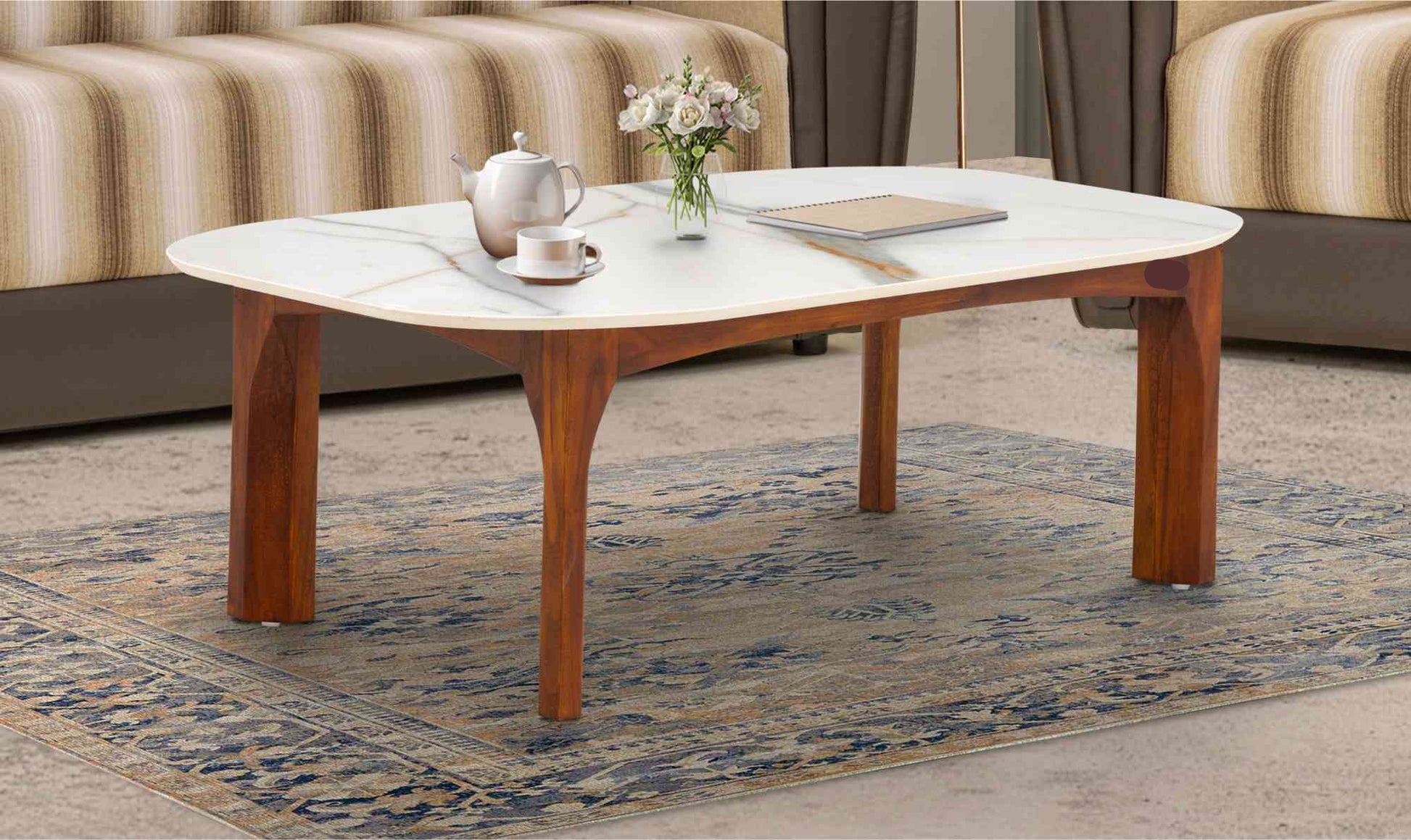 Material: Table made from Premium Solid Wood with PU Polish, and the table top made from Marble.