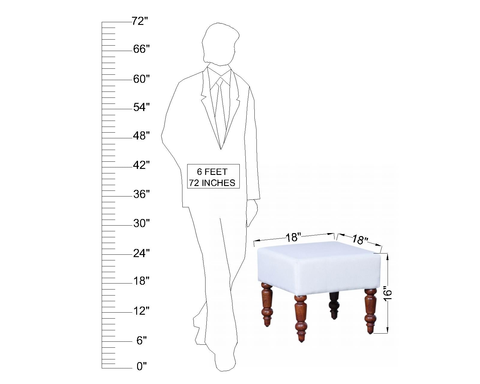 Classic White Square Ottoman Footstool with Turned Wood Legs and Elegant Pouffe for Living Room