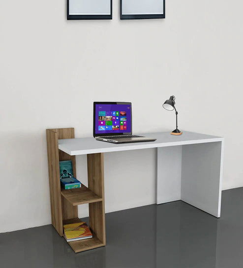 - Features:- Color: White & Brown, Style: Contemporary, single side legs and designer shelf