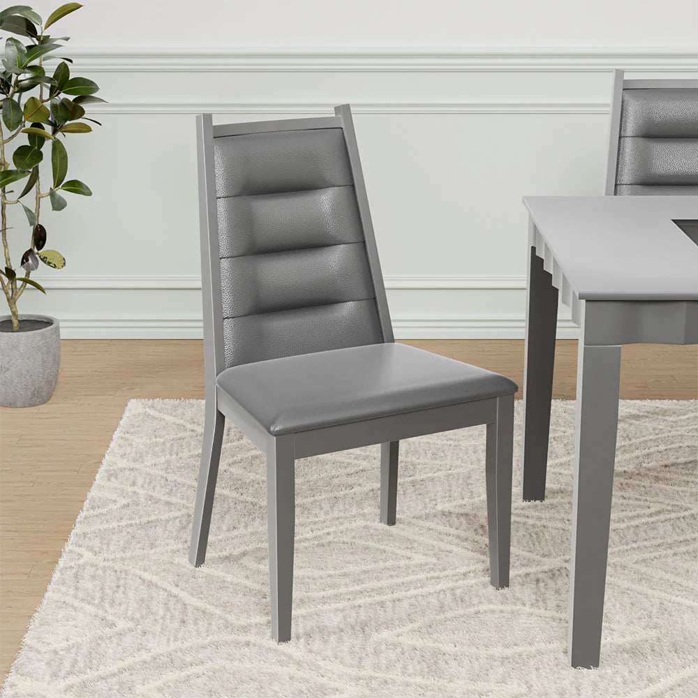 Leatherette Upholstery: Both the seat and the backrest panels are upholstered in a smooth, dark grey leatherette that is easy to clean and maintain.