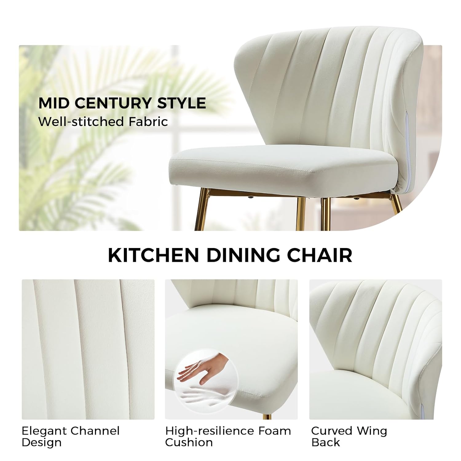 Modern White Velvet Dining Chairs with Gold Legs - Elegant & Comfortable Home Furniture
