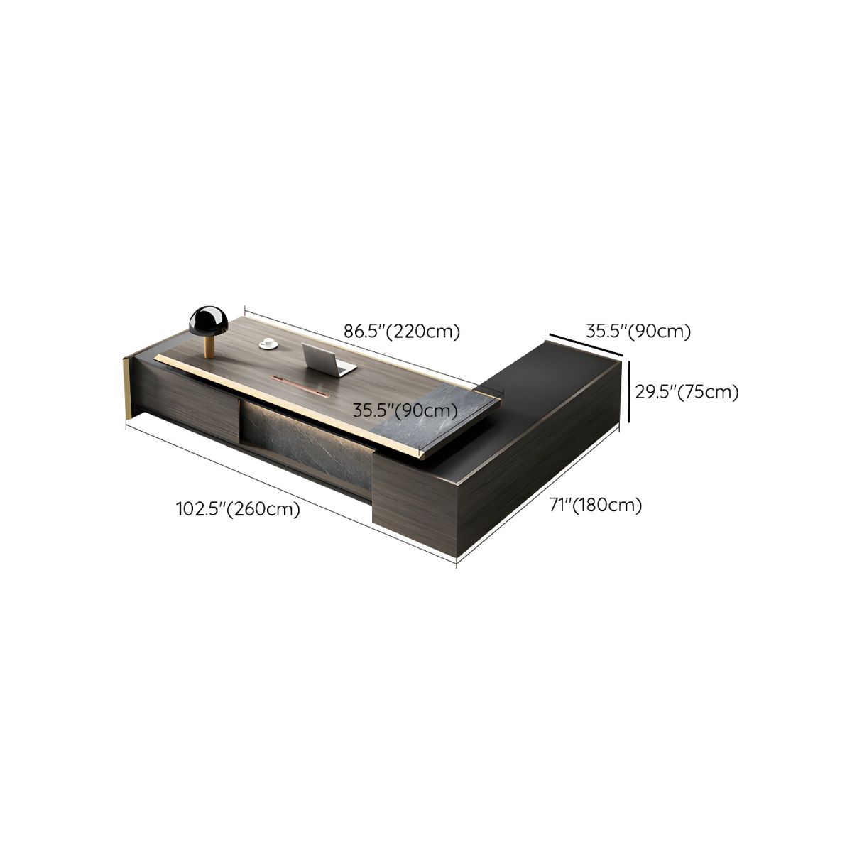 Director & Executive L-Shape Office Table Luxury Desk Made in MDF Side Unit Drawer and Storage Wire Manager - Wenge Brown