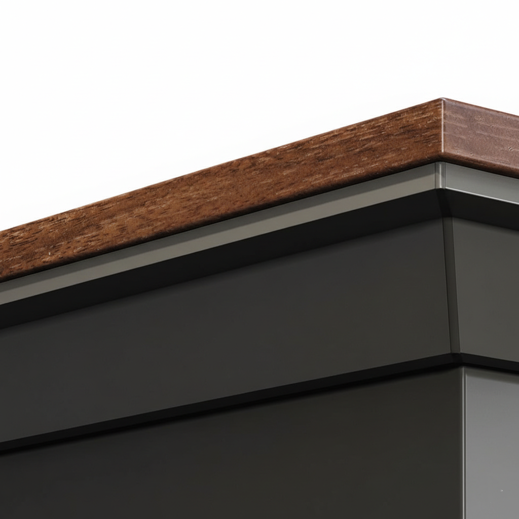 Surface finish: Smooth matte finish on both wood and grey elements.