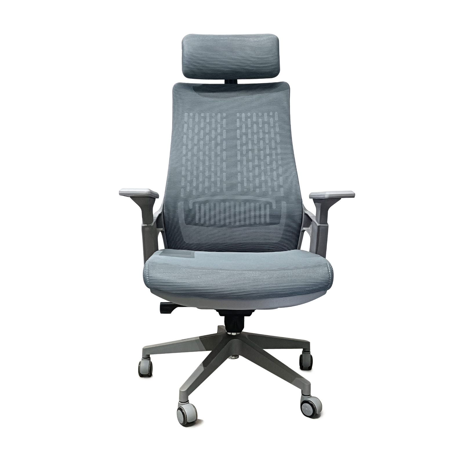 High Back Mesh Office Chair with Headrest for Directors & Executive | Ergonomic Revolving Chair with Adjustable Height | Grey Chair for Work from Home & Office Use