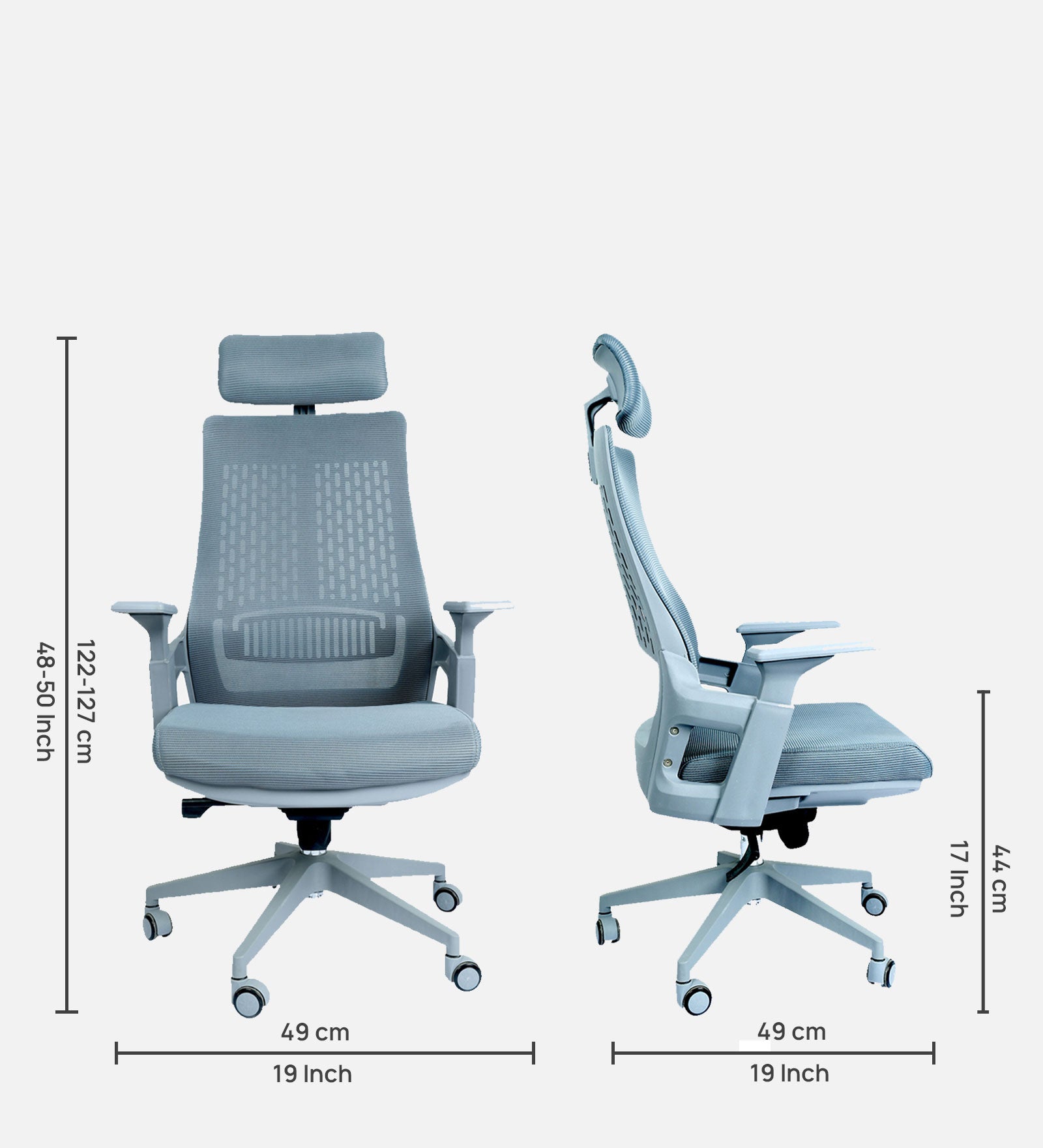High Back Mesh Office Chair with Headrest for Directors & Executive | Ergonomic Revolving Chair with Adjustable Height | Grey Chair for Work from Home & Office Use