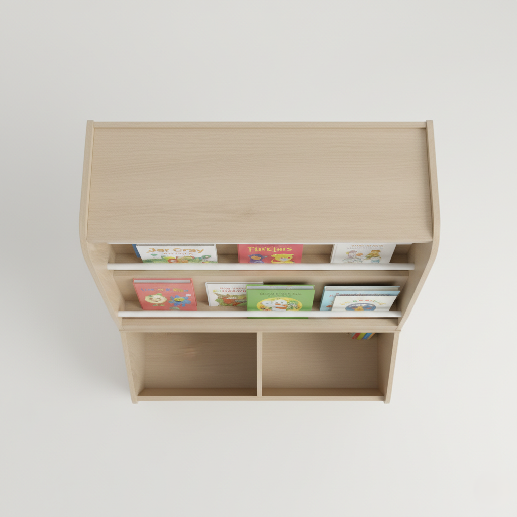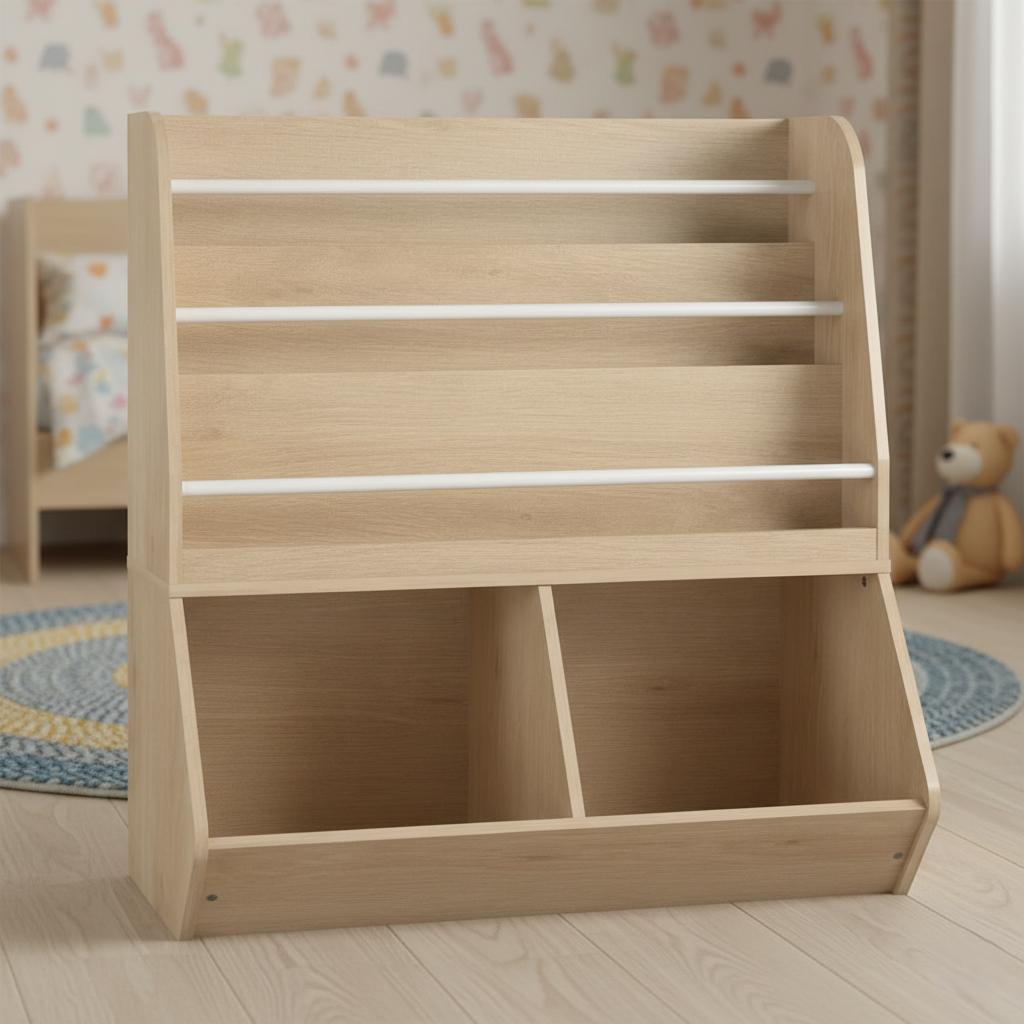 Kids Bookcase with Tiered Open Shelves and Lower Storage Sections - Natural Wooden Organizer for Books, Toys and Learning Essentials
