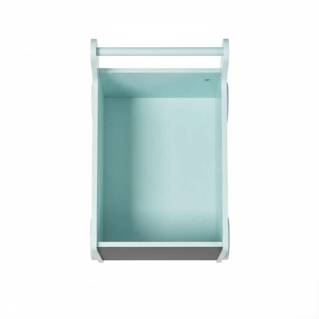 Kids Rolling Bookcase with Handle and Wheels - Open Toy and Book Storage Organizer for Kids Room