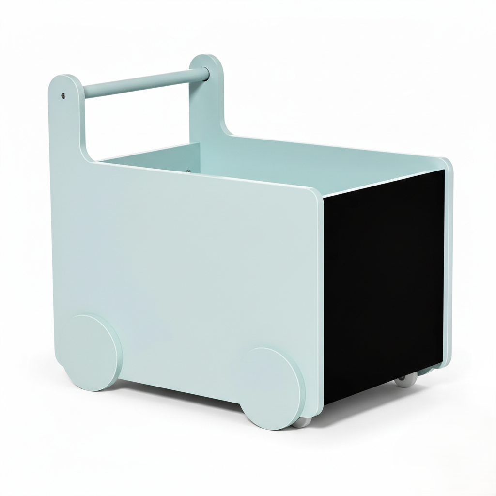Features: Smooth-rolling wheels for easy movement, open-top storage for quick access, sturdy handle for push-and-pull use, rounded corners for child safety.