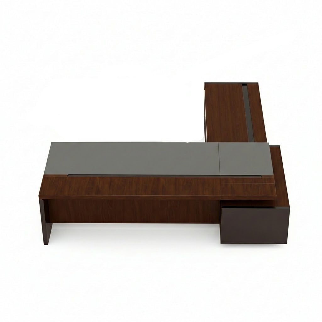 Luxury L Shape Director Table for Office Furniture, Modern Executive Workstation with Storage and Premium Wooden Manager Desk for Corporate