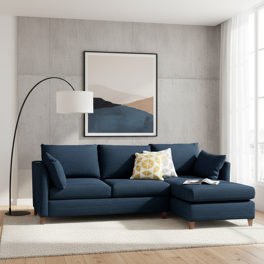 Features:- L-Shape Sofa Modern Design has a sturdy teak wood frame and durable fabric for a sleek, modern look and long-lasting comfort.