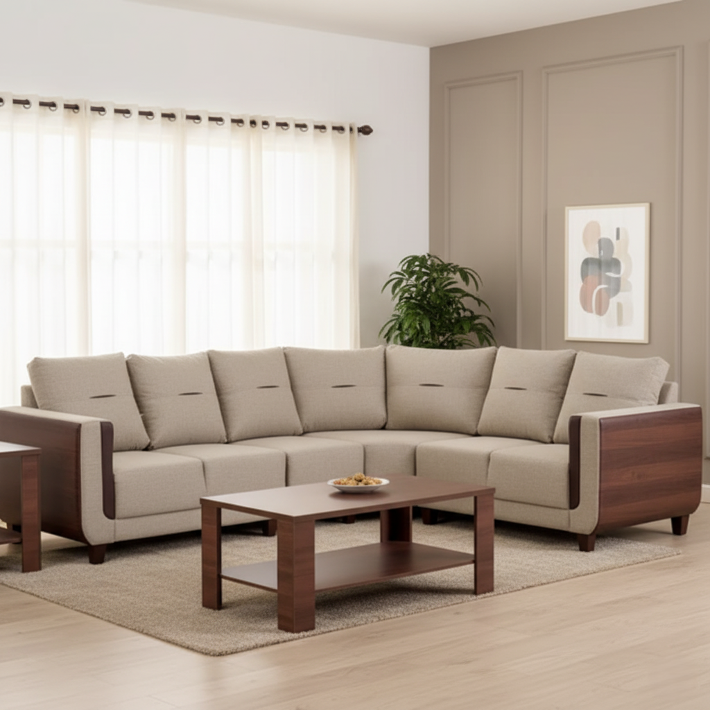 Features: L-Shape Sectional sofa with a sturdy teak wood frame and durable fabric for a sleek, modern look and long-lasting comfort.