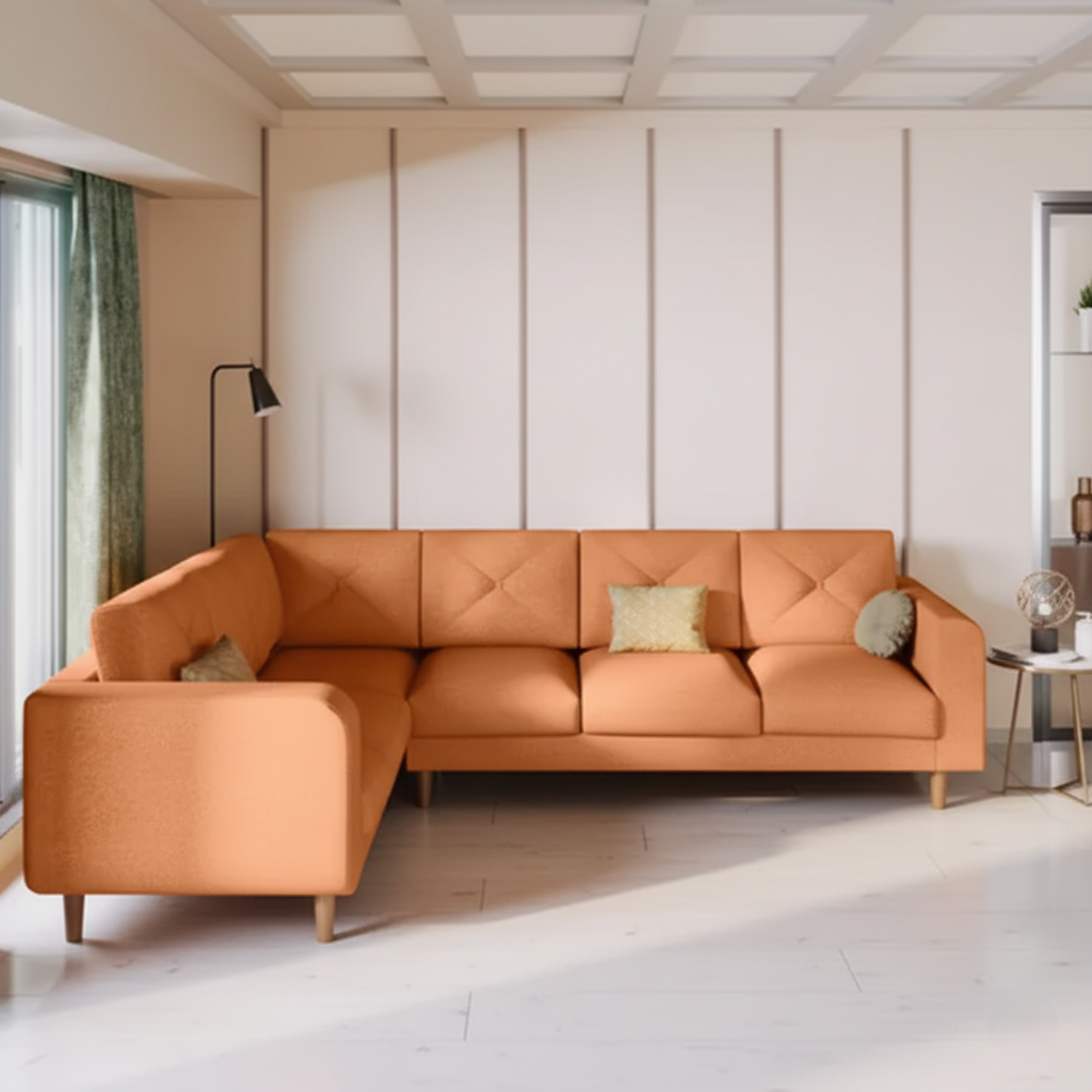 Features- Sectional L-shaped sofa has a sturdy teak wood frame and durable Fabric for a sleek, modern look and long-lasting comfort.