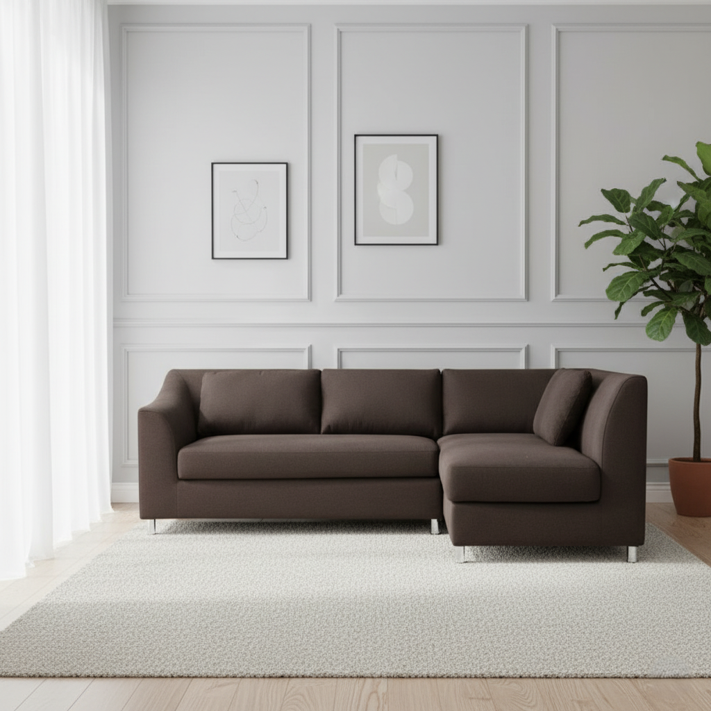 Features:- L Shape sofa has a sturdy teak wood frame and durable fabric for a sleek, modern look and long-lasting comfort.