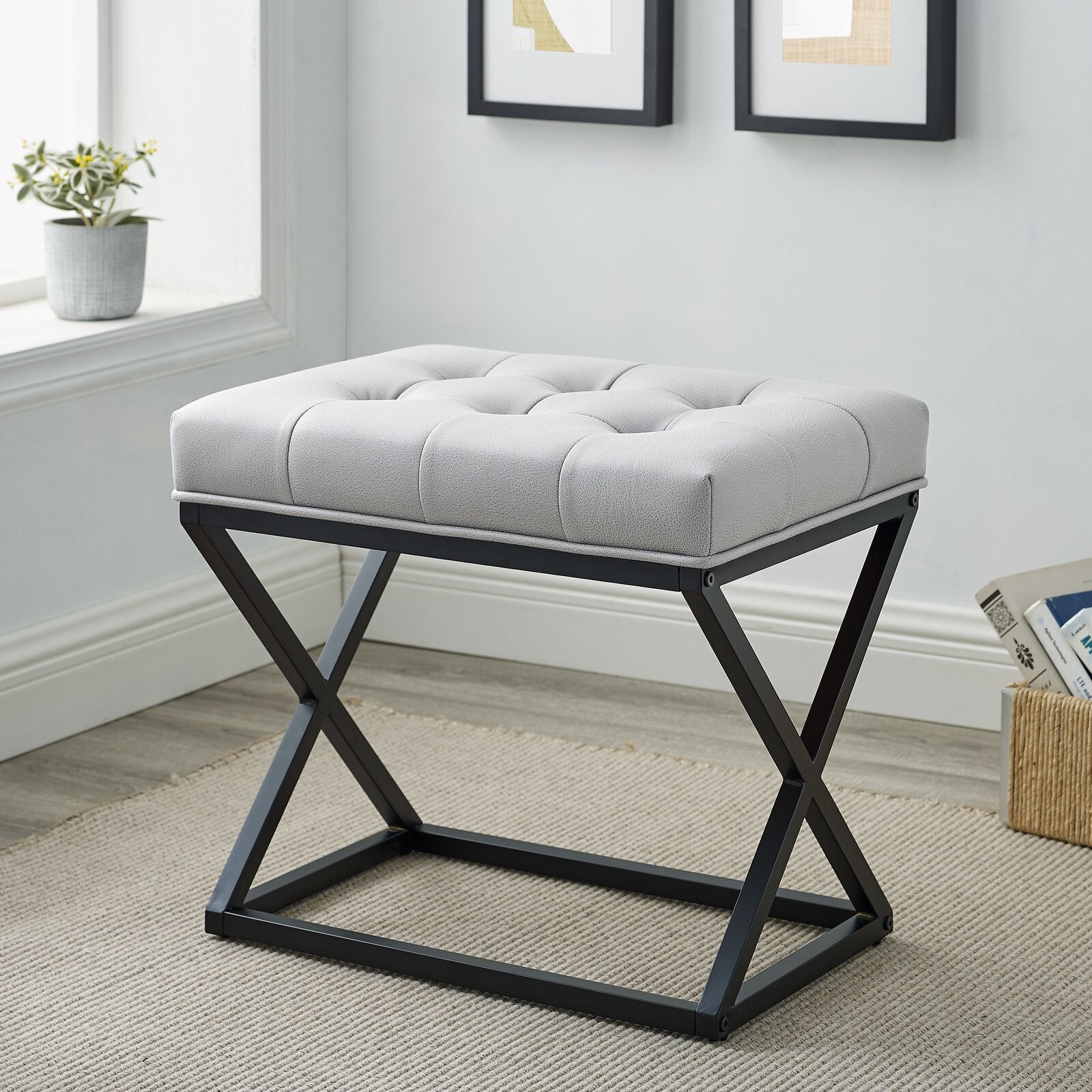 Features: Stylish tufted top, comfortable padding, durable black metal X-frame. Perfect for living rooms, bedrooms, or entryways.