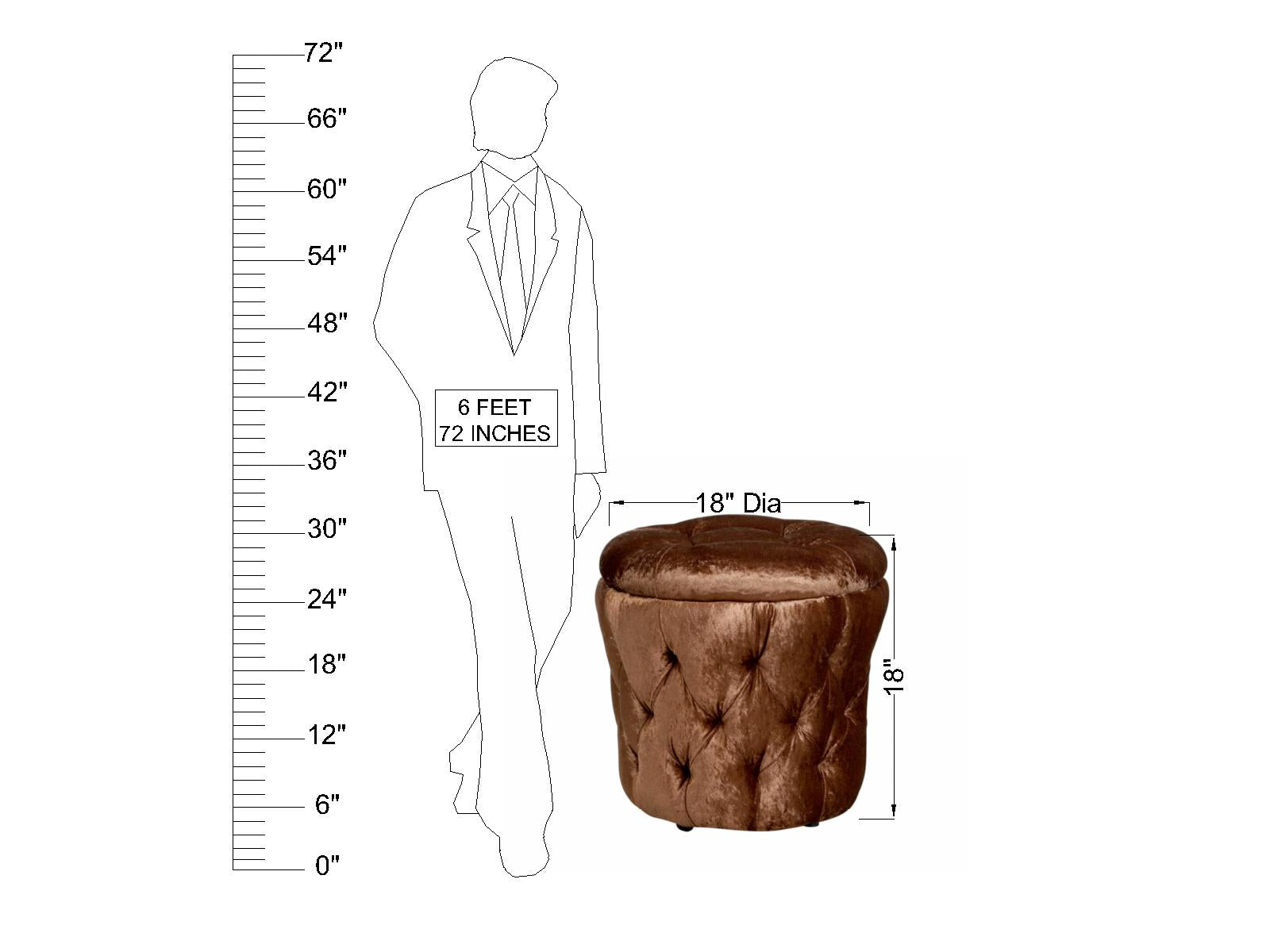 Luxurious Brown Velvet Round Ottoman Pouffe with Button Tufted Footstool and Seat for Living Room