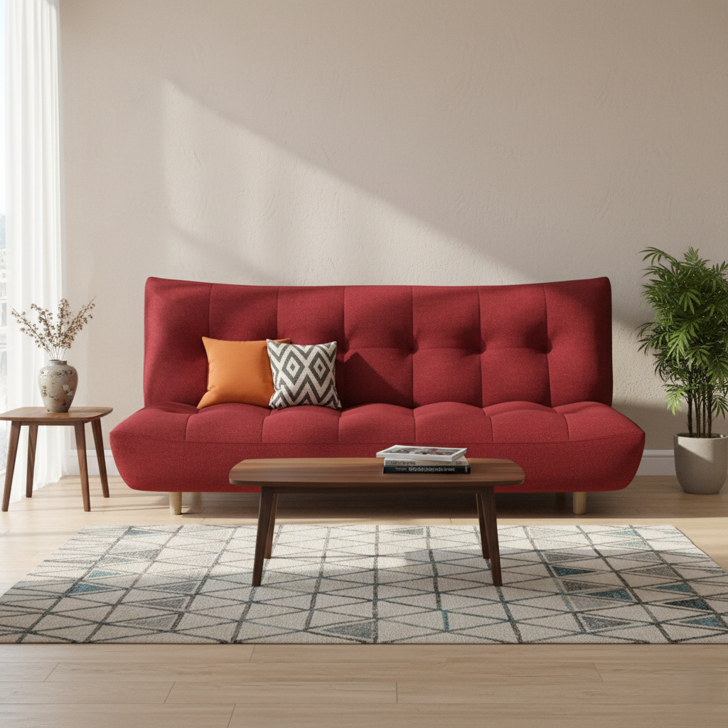 Modern 3-Seater Suede Fabric Tufted Sofa Cum Bed Space-Saving Convertible Design with Polished Wooden Legs, No Armrest
