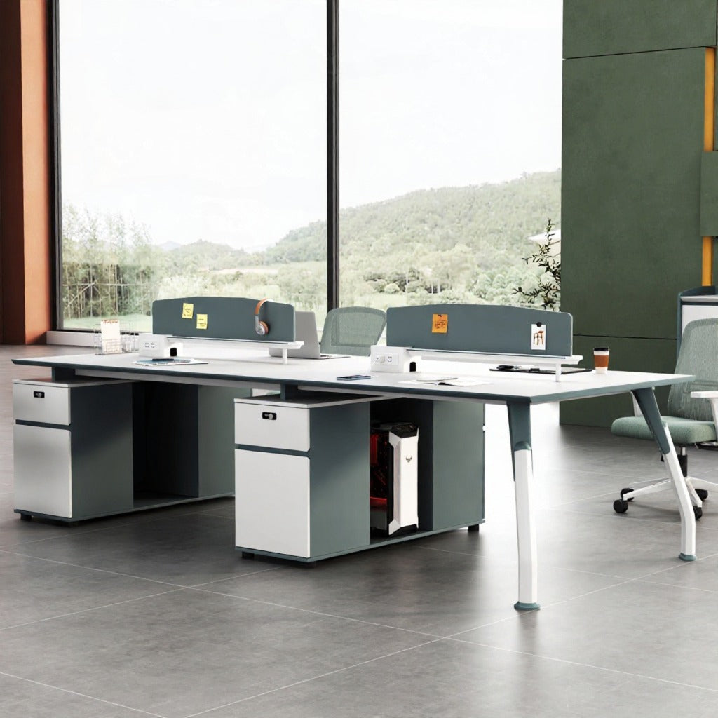 Modern 4-Person Collaborative Office Workstation Desk with Integrated Storage & Privacy Panels