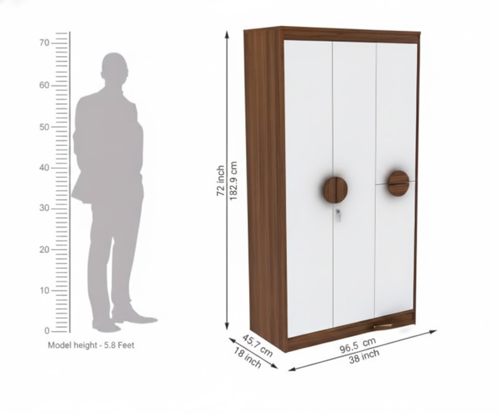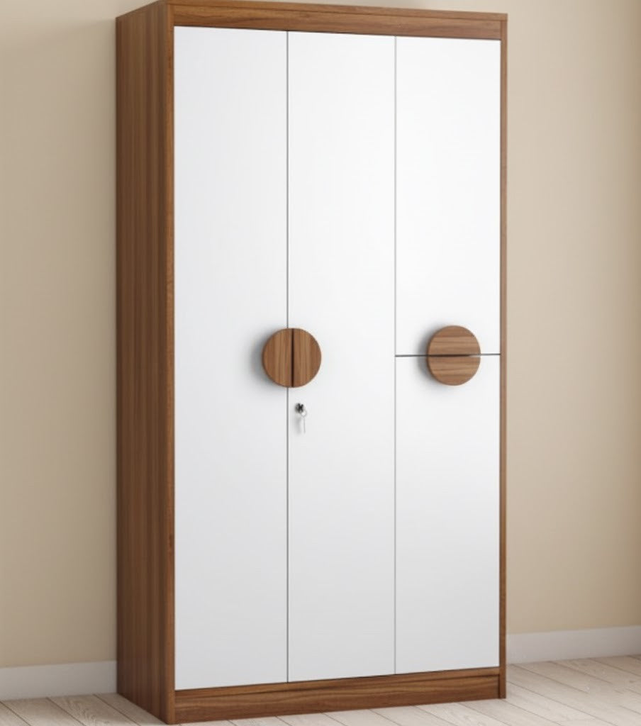 Modern Wardrobe Closet with Circular Wooden Handles and Secure Locking Mechanism for Organised Home Furniture