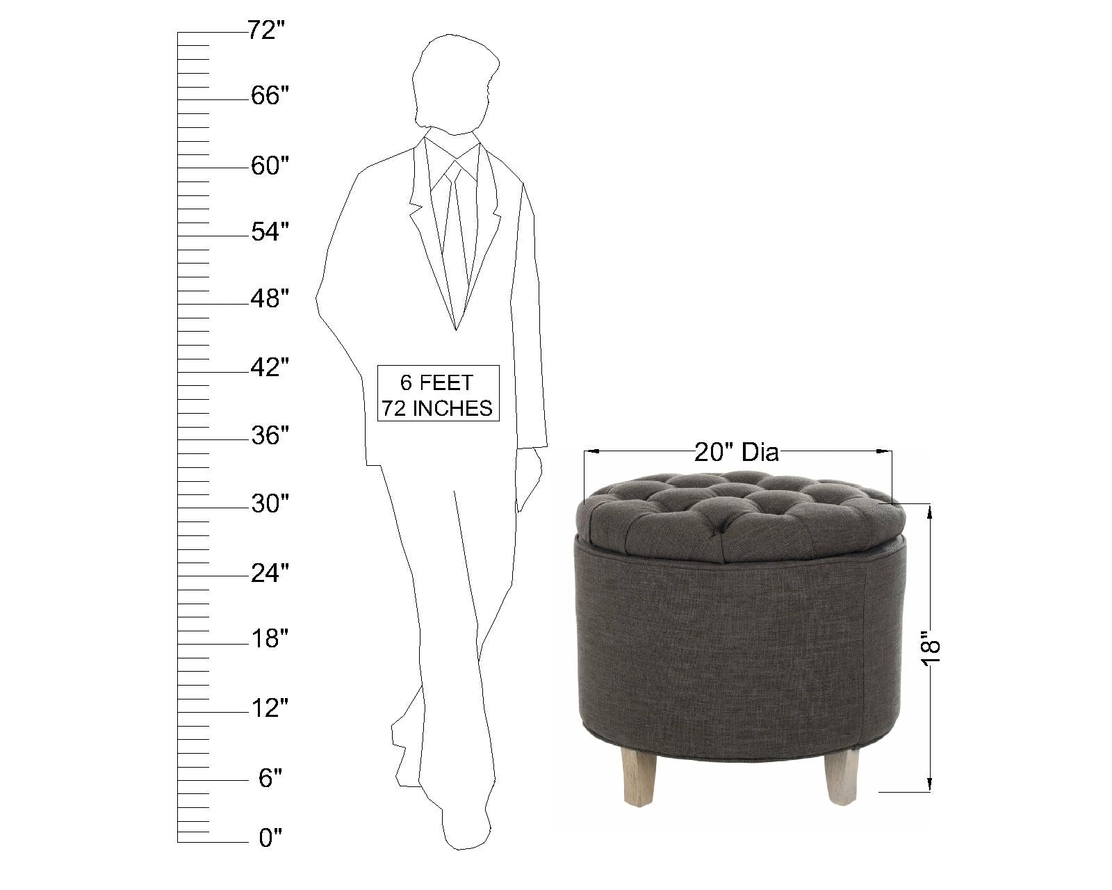 Features:- Stylish round design with deep button tufting, durable brown fabric, and solid wood legs. Ideal footrest or extra seat.